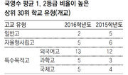 전국 2439개 고교의 2016학년도 대학수학능력시험 성적을 분석한 결과 과학고 등 특수목적고의 강세가 두드러진 반면 일반고는 올해도 고전을 면치 못하는 것으로 나타났다. 전체 고교의 65%를 차지하는 일반고의 학력 저하를 막을 대책이 필요하다는 지적이 나온다. 25일 동아일보는 교육부와 한국교육과정평가원의 ‘2016학년도 수능 고교별 성적’ 원자료를 입수해 분석했다. 교육부는 매년 수능 성적의 전반적인 흐름을 발표하지만 작년과 달리 올해는 고교별 성적은 공개하지 않았다. 이에 본보는 원자료에서 각 고교의 과목별 응시 인원과 등급 분포를 토대로 해당 고교를 추정해 성적을 분석했다. 국어A·B, 수학A·B, 영어에서 1, 2등급을 받은 학생의 평균 비율을 산출한 결과 한국외국어대부설고가 전국에서 1, 2등급 학생 비율이 가장 높았다. 이어 민족사관고, 상산고, 한일고, 인천국제고 순이었다. 1∼3위 학교는 모두 전국 단위로 선발하는 자율형 사립고이다. 수능 상위권 고교의 유형을 보면 과학고와 외국어고, 국제고 등 특목고 강세 현상이 확실히 드러났다. 2015학년도 수능에서는 성적 상위 30개 고교 중 19곳(63%)이 특목고였으나 2016학년도 수능에서는 23곳(76%)으로 늘었다. 외국어고는 12곳에서 13곳으로, 과학고는 3곳에서 5곳으로, 국제고는 4곳에서 5곳으로 일제히 늘었다. 반면 ‘일반고 황폐화’ 현상을 반영하듯 일반고는 부진했다. 2015학년도만 해도 상위 30곳 중 5곳이 일반고였으나 이번 수능에서는 2곳(한일고, 공주사대부고)으로 줄었다. 이마저 전국 단위로 학생을 선발하는 ‘자율학교’로, 평준화 지역의 보통 일반고와는 거리가 멀다. 지난해 강세를 보인 자율형 사립고는 6곳에서 5곳으로 줄며 주춤했다. 입시 전문가들은 대학 입시 및 과학고 체제 변화가 특목고 강세를 부른 것으로 분석하고 있다. 임성호 종로학원하늘교육 대표이사는 “과학고 학생들이 예전에는 올림피아드나 경시대회에서 입상만 하면 대학에 갈 수 있는 길이 많았지만 최근 특기자 전형이 줄어들면서 수능이 중요해진 상황”이라고 분석했다. 이영덕 대성학력개발연구소장은 “과학고 학생들은 2015학년도 입시까지는 고2 때 대부분 수시로 대학에 갔지만 조기졸업제가 폐지된 2016학년도부터는 무조건 고3을 마쳐야 대학에 갈 수 있게 됐다”며 “자연히 수능까지 신경을 쓰게 되고 공부 기간도 1년 늘어나 수능 성적이 더 좋아진 것”이라고 설명했다. 일반고가 수능에서 부진한 것 역시 대입제도의 영향 때문이라는 지적도 나왔다. 이만기 유웨이중앙교육 교육평가연구소장은 “대입에서 수능 비중이 줄고 수시 학생부종합전형이 확대되면서 일반고 학생들은 수시로 쏠리고 있다”며 “일반고의 중위권 이하에서는 어차피 특목고 학생들과 경쟁하기 어렵기 때문에 수능을 포기하는 분위기”라고 지적했다.이은택 nabi@donga.com·최예나·유덕영 기자}