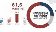 10명 중 6명 넘는 국민이 ‘비례한국당’이나 ‘비례민주당’ 등과 같이 비례대표 정당득표를 위한 ‘위성정당’ 또는 ‘비례정당’ 창당에 반대한다는 여론 조사 결과가 30일 나왔다. 여론조사기관 리얼미터가 27일 전국 19세 이상 성인 504명을 대상으로 실시한 조사(95% 신뢰수준에 표본오차 ±4.4%포인트) 결과 ‘비례정당 창당에 반대한다’는 응답이 61.6%로 집계됐다. 이 중 ‘매우 반대’를 택한 사람이 46.7%로 전체 응답자의 절반에 달했다. 반면 ‘비례정당 창당에 찬성한다’고 답한 응답자는 전체의 25.5%로 반대 응답 비율보다 26.1%포인트 낮았다. 특히 반대 의견은 자유한국당 지지세가 상대적으로 강한 대구·경북(63.1%)에서도 높게 나타났다. 보수 성향이 짙은 60대 이상에서도 66.9%가 비례정당 창당을 부정적으로 본다고 답했으며 스스로를 보수성향이라고 생각한 사람들 중에서도 50.8%가 비례정당 창당에 반대한다고 응답했다. 다만 한국당 지지층의 경우 찬성 의견(45.4%)과 반대(43.9%) 의견이 오차범위 안에 있었다. 비례정당은 ‘4+1 협의체’(더불어민주당·바른미래당 당권파·정의당·민주평화당+대안신당)가 마련한 선거법 개정안에 대비해 한국당이 대응책으로 꺼내든 카드다. 강성휘 기자 yolo@donga.com}