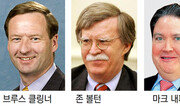 주한 미국대사로 내정됐던 빅터 차 미 전략국제문제연구소(CSIS) 한국석좌의 낙마에 따라 차기 주한 미국대사가 누가 될지에 관심이 쏠리고 있다. 31일 한반도 전문가들의 의견을 종합하면 미 워싱턴 정책연구소 헤리티지재단의 브루스 클링너 선임연구원, 대북 강경파인 존 볼턴 전 유엔 주재 미국대사, 마크 내퍼 주한 미국 대사대리가 후보로 거론된다. 워싱턴의 한 외교소식통은 이날 동아일보와의 통화에서 “지난해 헤리티지재단이 백악관에서 브리핑을 할 때 도널드 트럼프 대통령이 ‘내가 하고 싶었던 말’이라고 칭찬했다고 한다”며 “이를 고려하면 이 재단의 한반도 전문가인 클링너 선임연구원이 주한 미대사 후보 1순위”라고 전망했다. 클링너 연구원은 미 중앙정보국(CIA) 분석관 출신으로 2007년부터 헤리티지재단에 몸담고 있다. 그는 지난해 5월 자유아시아방송(RFA)과의 인터뷰에서 “문재인 대통령이 미국과 조율 없이 무리한 대화를 강행하면 한미 간 껄끄러운 관계가 될 것이란 우려가 있다”며 대북 대화에 신중한 태도를 보였다. 조지 W 부시 행정부 때 유엔 주재 대사를 지낸 볼턴은 트럼프 대통령과 손발을 잘 맞출 수 있는 대표적인 강경파다. 그는 지난해 12월 트럼프 대통령에게 북한의 대륙간탄도미사일(ICBM) 프로그램을 정지시키기 위해 행동할 수 있는 시한을 ‘3개월’이라고 보고하며 강경 대응을 주문하기도 했다. 현재 주한 미대사관을 지키고 있는 내퍼 대사대리도 대사 물망에 오르고 있다. 그는 2015년 4월 주한 미 대사관 차석으로 부임해, 2017년 1월 마크 리퍼트 전 대사 이임 후부터 대사관 대사 대리로 있다. 한국 정부와 의견 조율에 능하다는 평가를 받고 있다. 그는 최근 평창 올림픽 전에 열릴 북한 열병식에 대해 “북한이 스스로 원칙을 훼손하는 명분 없는 행동을 하고 있다”며 “올림픽 정신의 훼손이자 국제사회를 향한 정면 도전”이라고 강하게 비판하기도 했다. 한편 차 석좌의 낙마 소식에 미국 외교·안보 전문가들은 트럼프 대통령의 국정연설이 진행 중이던 지난달 30일(현지 시간) 저녁 ‘#아임위드빅터(ImWithVictor)’라는 해시태그를 자신의 소셜네트워크서비스(SNS) 계정에 게재하며 지지의 뜻을 보냈다. 박정현 브루킹스연구소 한국석좌는 “대부분의 한국 전문가가 동의할 것”이라며 해당 해시태그를 걸었다.조은아 achim@donga.com·한기재 기자}