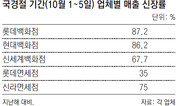 중국 국경절 기간(10월 1∼7일)을 맞아 한국을 방문한 유커(遊客·중국인 관광객) 덕분에 국내 백화점과 면세점의 매출이 크게 올랐다. 1∼5일 주요 백화점의 중국인 관광객 매출은 지난해보다 최대 87%까지 증가하며 큰 상승세를 보였다. 롯데백화점은 1∼5일 서울 중구 남대문로 본점의 중국인 매출이 지난해 국경절 연휴(10월 2∼6일) 기간보다 87.2% 올랐다고 6일 밝혔다. 본점 전체 매출의 19.9%가 중국인이 사용하는 은련카드 매출로 집계됐다. 이는 지난해 은련카드 매출 비중(16.9%)보다 3%포인트 늘어난 것이다. 현대백화점의 중국인 매출도 작년 같은 기간보다 86.2% 증가했다. 품목별로는 해외패션(94.1%)과 여성패션(82.6%) 매출이 가장 큰 폭으로 늘었고, 해외패션 상품에 비해 비교적 가격대가 저렴한 영패션 품목 매출도 75.5% 증가했다. 같은 기간 신세계백화점의 유커 매출 역시 지난해 대비 67.7% 상승했다. 여성패션 매출이 108.3%로 가장 크게 늘었고, 화장품(66.3%)과 남성패션(24.9%) 판매도 증가세를 보였다. 올해는 패키지가 아닌 자유일정 관광객의 비중이 예년보다 늘어난 것이 여러 가지 변화를 가져왔다. 특히 백화점 식품관에 입점한 유명 맛집에 대한 관심이 높아진 점이 눈에 띈다. 블로그 등을 통해 중국에 아직 진출하지 않은 해외 유명 디저트 가게나 한국에서만 맛볼 수 있는 식품 매장을 수소문해 찾아오는 관광객들이 증가했기 때문이다. 실제로 해외 디저트 브랜드 ‘몽슈슈’와 ‘도지마롤’ 등이 입점해 있는 현대백화점 식품점에서는 중국인 매출이 지난해보다 64.8% 늘었다. 또 올 8월 본점 식품관을 리뉴얼해 오픈한 신세계백화점 역시 떡과 장(醬), 술 등을 파는 매장에 관광객이 몰려 관련 매출이 약 50% 신장했다. 면세점도 국경절 유커 특수를 누렸다. 롯데면세점에서는 지난해보다 매출이 전체 35% 증가했다. 이 가운데 국산 패션브랜드 매출은 270%, 국산 액세서리 브랜드 매출은 160% 올랐다. 최고야 기자 best@donga.com}