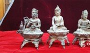 조선 초기 신앙의 목적으로 금강산에 묻혀 있던 것으로 추정되는 삼존불상이 16일 처음으로 공개됐다. 문명대 동국대 명예교수(한국미술사연구소장)는 이날 불상을 공개하고 “1450년경 만들어진 것으로 보이며 국내에서는 유일한 금강산 매립 불상”이라며 “감정 결과 금강산 은정골에서 출토돼 북한 평양박물관에 소장돼 있는 10여 점의 금동불상과 같은 티베트계 명나라 양식의 금동아미타삼존불상으로 확인됐다”고 말했다. 문 교수에 따르면 매불(埋佛) 신앙은 고려 말부터 당대 사람들이 불국토라고 생각한 금강산을 중심으로 발달했다. 이번에 공개된 불상은 본존 아미타불상, 좌협시 관음보살상, 우협시 지장보살상으로 전체 크기는 12∼13cm, 대좌를 제외한 부처님의 크기는 7.5∼8.2cm다. 문 교수는 “가슴이 나오고 허리가 가늘며 두 손이 유난히 크고 긴 전형적인 티베트계 명나라 양식의 불상”이라고 밝혔다. 문 교수는 불상이 올해 중국 지안(集安) 시를 거쳐 우리나라에 들어왔고, 개인이 소장하고 있다고 밝혔다. 불상의 가치 등에 관한 학계의 추가 연구가 필요할 것으로 보인다.조종엽 기자 jjj@donga.com}