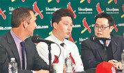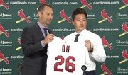 오승환(34)이 12일 메이저리그 세인트루이스의 안방인 미국 미주리 주 세인트루이스의 부시스타디움에서 공식입단식을 가졌다. 존 모젤리악 세인트루이스 단장과 마이크 매시니 감독까지 입단식에 참석해 태평양을 건너온 오승환을 환영했다. 지난 시즌까지 매시니 감독이 달던 등번호 ‘26’이 새겨진 유니폼을 받아든 오승환은 “한국과 일본에서 이룰 것을 이뤘다. 이제 더 큰 무대인 메이저리그에 도전하겠다. 명문 구단에 입단하게 돼 영광이다”고 말했다. 계약 기간은 1년을 보장한 뒤 2017년은 구단 옵션에 따라 결정하는 ‘1+1’ 조건으로 발표됐다. 현지 언론은 오승환의 첫 해 연봉이 최대 500만 달러(약 60억5000만 원)이며 2년 총액 1100만 달러 규모라고 추정했다. 오승환은 “미국에서는 투심 패스트볼을 많이 던지는 것으로 알고 있다. 내 강점은 포심 패스트볼(직구)이다”고 밝혔다. 그는 또 자신의 별명 가운데 ‘스톤 부다(Stone Budda·돌부처)’ 보다는 ‘파이널 보스(Final Boss·끝판 대장)’를 더 좋아한다고 밝혀 눈길을 끌었다. 도박과 관련된 질문에는 “불법인지 몰랐다. 메이저리그에 온 것과는 무관하다”고 주장했다. 매시니 감독은 “대단한 구종과 성적을 남긴 오승환을 불펜 어디에 기용해야할지 생각해 탄력적으로 마운드를 운용하겠다”고 말했다. 모젤리악 단장은 “우리 팀의 소방수는 트레버 로즌솔이다. 오승환의 능력을 스프링캠프에서 확인하겠다”고 밝혀 오승환을 7, 8회에 등판하는 셋업맨으로 기용하겠다는 구상을 드러냈다. 오승환은 13일 귀국한 뒤 2월 미국 플로리다 주 주피터에서 열리는 스프링캠프에 참가할 계획이다.김종석 기자 kjs0123@donga.com}
