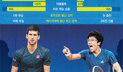정현이 몇 년 째 아버지와 어머니보다 함께 보내는 시간이 더 많은 사람이 있다. 2012년부터 정현을 지도하고 있는 윤용일 코치(43)다. 그런 윤 코치가 18일 정현과 노바크 조코비치(세르비아)의 경기를 지켜본 뒤 “승패를 떠나 너무 잘했다. 특히 스트로크 대결에서 조코비치와 대등하게 맞선 게 대견하다”고 말했다. 윤 코치는 며칠 전 정현의 에이전트인 IMG로부터 1회전 상대가 조코비치로 결정됐다는 소식을 처음 들은 뒤 “차라리 잘됐다는 기분이었다”고 털어놓았다. 정현이 꼭 이겨야 한다는 부담에서 초월해 오히려 한 단계 성장할 수 있는 무대가 될 수 있으리란 기대감 때문이었다. 윤 코치는 “현이가 지난 연말 훈련소 입소로 4주 동안의 공백이 있어 호주오픈을 앞두고 몸 상태가 80% 정도였다. 컨디션이 걱정되긴 했지만 오늘 보니 체력적으로 전혀 문제가 없었다”고 평가했다. 그는 또 “지난해 US오픈에서 정현이 2회전에서 세계 5위 스탄 바브링카와 붙어봤던 게 조코비치를 상대하는 데도 큰 도움이 됐다”고 덧붙였다. 정현은 평소 서브가 약점으로 지적된다. 조코비치 역시 경기 전 “정현이 키가 큰데 서브는 강하지 않다”고 평가했다. 이날 경기 후 윤 코치는 “조코비치를 보니 서브가 강한 것만이 능사가 아니다. 오히려 구질을 다양하게 하고 상대의 허를 찌르는 컨트롤 능력이 중요하다. 현이도 이런 걸 느꼈을 것”이라고 말했다. 실제로 조코비치는 시속 180km대 후반의 서브를 넣다가 갑자기 스핀이 걸리는 160km대 서브를 구사해 정현의 리턴을 어렵게 했다. 윤용일 코치는 현역 시절 하늘의 별따기에 비유되는 메이저 대회 예선을 거쳐 1998년 US오픈과 2001년 윔블던 본선에 출전했던 스타 출신이다.멜버른=김종석 기자 kjs0123@donga.com}