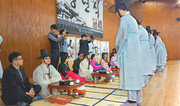 “성년이 되게 도와주신 조상과 부모님 은혜에 감사합니다. 사회인으로서 정당한 권리에 참여하고 신성한 의무를 충실하게 실천하는 어른의 도리를 다할 것을 엄숙히 선서합니다.” 지난달 30일 오후 충남 논산대건고 마리아홀. 2학년 이정윤 군이 학생 대표로 성인선서를 하자 강승구 교장은 “그대가 이제 성년임을 인정한다”고 선언했다. 변질되거나 잊혀진 성년식의 의미를 되살리기 위해 대건고는 2000년부터 16년째 한 해도 거르지 않고 전통 성년식을 열어오고 있다. 240여 명의 학생과 교사는 모두 상투에 갓을 쓰고 두루마기와 행전을 착용한 채 3시간여 동안 엄숙한 의식을 이어 나갔다. 곱게 한복을 차려입고 참석한 어머니들은 아이들이 예복을 흐트러짐 없이 입을 수 있도록 정성을 다해 매만져줬다. 행사를 진행한 평생교육 전문기관인 대전지역사회교육협의회 이정옥 대표는 “이렇게 오래 전통 성년식의 전통을 지켜나가는 학교는 대건고가 유일할 것”이라며 “성년식 예복도 해마다 꾸준히 추가해 이제는 큰 행사를 치르는 데 부족함이 없다”고 말했다. 행사의 하이라이트는 ‘자(字)와 술 내림’ 의식이었다. 교사와 학부모들은 아이들의 절을 받은 뒤 미리 준비한 자를 건네고 청주와 안주를 주며 덕담을 건넸다. 교사들은 성인의 의미를 강조하면서도 1년 앞으로 다가온 대입을 완전히 떨쳐내지는 못했다. 김규조 교사는 학생들에게 덕담 말미에 볼펜을 선물로 건네면서 “내년 대입에서 좋은 성적을 내야 한다”고 강조했다. 김준민 군은 “부모님이 항상 바른 마음을 가지고 살아가라면서 일송(一松)을 자로 지어주셨다”며 “부모님의 품속과 가족의 울타리를 벗어나 진정한 성인 남자이자 사회구성원이 되겠다는 다짐을 했다”고 말했다. 이 행사를 6년 동안 담당한 한우진 교사는 “부모님들은 ‘이제 우리 아이 다 컸구나’ 하는 대견함과 자부심을 갖게 되고 아이들은 엄숙한 의식에 참여하면서 진지하게 성인임을 자각한다”며 “성년식을 치른 뒤 피드백 활동 시간에 다시 글로 적어 되새기고 이를 자료집으로 만든다”고 소개했다. 이 학교는 1학년에게는 주변 서당의 훈장을 초청해 ‘전통예절교육’을, 3학년에게는 외부 전문가를 모셔 ‘현대예절 및 면접예절’을 가르친다. 유학의 고장인 논산시가 전통 재현 행사를 많이 치르기 때문에 이를 연계 활용하는 교육도 펼친다. 성년식 다음 날인 지난달 31일 논산시 주관으로 돈암서원에서 열린 조선시대 과거 재현행사인 ‘논산향시’에 대건고 학생 56명이 응시해 14명이 장원과 입상을 차지했고 48명이 육방과 장군 등 향시 진행요원으로 참여했다. 지명훈 기자 mhjee@donga.com}