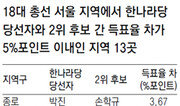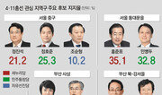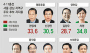 ○ 영등포을 권영세, 신경민에 3.1%P차 쫓겨새누리당의 ‘실세’ 사무총장과 민주통합당의 ‘간판’ 새 얼굴 간의 대결로 관심을 끄는 서울 영등포을은 초박빙이다. 최근 전략 공천된 민주당 신경민 대변인은 16, 17일 실시한 동아일보 여론조사에서 단숨에 30.5%의 지지를 받았다. 이 지역에서 내리 3선을 한 새누리당 권영세 사무총장(33.6%)이 오히려 쫓기는 형국이 됐다. 인지도 조사에선 권 사무총장(79.7%)이 MBC 앵커 출신인 신 대변인(52.2%)을 앞섰지만 호감도에서는 신 대변인(42.3%)이 권 사무총장(35.0%)을 뛰어넘었다. 이재명 기자 egija@donga.com ○ 양천갑 민주 차영, 길정우보다 6.1%P 높아서울 양천갑은 목동 아파트단지가 밀집해 있어 새누리당 강세 지역으로 꼽혀왔다. 이번 조사에선 다른 분위기도 감지된다. 민주통합당 차영 후보(34.8%)가 지지도에서 새누리당 길정우 후보(28.7%)를 6.1%포인트 앞섰기 때문. 적극투표층에서도 차 후보(37.1%)가 길 후보(31.8%)를 5.3%포인트 앞섰다. 정당 지지도에선 아직 새누리당(29.3%)이 민주당(25.1%)보다 높은 것을 감안하면, 지금까지는 개인 경쟁력에서 차이가 난 듯하다. 이승헌 기자 ddr@donga.com ○ 동작을 정몽준, 이계안 11.9%P 앞서현대가의 오너와 최고경영자(CEO) 간 맞대결로 관심을 모으는 서울 동작을에서 새누리당 정몽준 전 대표의 인지도는 96.8%에 달했다. 현대자동차 사장 출신으로 동작을에서 17대 의원을 지낸 이계안 전 의원의 인지도(71.1%)도 상당히 높았지만 대선 예비주자인 정 전 대표에겐 못 미쳤다. 정 전 대표는 특히 20대에서도 40.9%의 지지를 얻어 이 전 의원(33.3%)을 제쳤다. 이재명 기자 egija@donga.com ○ 서대문갑 이성헌-우상호 0.9%P차 박빙연세대 총학생회장 출신 선후배 간의 네 번째 총선 맞대결도 앞이 보이지 않는 혼전 양상을 보인다. 새누리당 이성헌 의원(35.7%)과 민주통합당 우상호 전 의원(34.8%)의 지지율은 0.9%포인트 차로 팽팽하다. 적극 투표층에서도 이 의원(39.3%)과 우 전 의원(35.0%)의 지지율 차는 오차범위 내인 4.3%포인트였다. 승부는 얼마나 부동층(25.1%)을 흡수하느냐에 달린 듯하다. 이승헌 기자 ddr@donga.com}