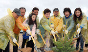 ‘2021 겨울아시아경기’ 남북 공동개최를 염원하는 나무심기 행사가 식목일인 5일 강원 철원군 근남면 통일양묘장에서 열렸다. 아시아녹화기구와 강원도가 ‘통일로 가는 나무심기’라는 주제로 마련한 이날 행사에는 강창희 (재)기후변화센터 이사장 겸 아시아녹화기구 운영위원(전 국회의장), 정광수 아시아녹화기구 상임대표(전 산림청장), 최문순 강원도지사, 이현종 철원군수 등 약 200명이 참석해 소나무와 전나무를 비롯해 나무 2021그루를 심었다. 통일양묘장은 철원군산림조합이 통일을 대비해 조성했다. 아시아녹화기구와 공동으로 북한에 심을 묘목을 생산한다. 지난해 2만8000m² 터에 23만 그루에 해당하는 종자를 심었다. 철원=이인모 기자 imlee@donga.com}