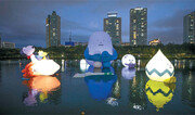 2014년 ‘러버덕’으로 화제를 모은 서울 송파구 석촌호수에 이번엔 우주 몬스터들이 등장했다. 3일부터 시작한 ‘루나 프로젝트’는 디자이너 그룹인 ‘스티키몬스터랩(SML)’과 협업한 공공미술 프로젝트다. 러버덕 프로젝트 이후 석촌호수 공공미술 프로젝트에 국내 작가가 참여한 것은 이번이 처음이다. 최고 높이 16m의 초대형 풍선 작품을 포함해 7개의 우주 몬스터가 호수에 띄워졌다. 달 착륙 50주년을 기념한 캐릭터들은 아폴로 10호와 우주 행성의 모습을 단순하고 귀엽게 구성했다. 양말 한쪽을 벗어 던지고 쪼그리고 앉아 있는 푸른색 캐릭터는 ‘지구몬’, 옆의 보라색 동그란 캐릭터는 달, ‘루나몬’이다. 아폴로 10호를 표현한 ‘솔라몬’ 위에는 만화 ‘피너츠’에 등장하는 유명 캐릭터 스누피와 찰리 브라운이 타고 있다. 스누피는 재활용 플라스틱 섬유를 이용해 제작했다. 루나 프로젝트는 27일까지 이어진다. 루나 프로젝트의 스누피는 17일 개막하는 서울 송파구 롯데뮤지엄의 ‘To the Moon with Snoopy’로 이어진다. 스누피를 매개로 우주를 돌아보는 전시다. 출발점은 미국 ‘찰스 엠 슐츠 뮤지엄’에서 열린 특별 전시 ‘To the Moon: Snoopy Soars with NASA’. 스누피 탄생 70주년과 달 착륙 50주년을 기념한 전시다. 특히 1968년 시작한 ‘우주비행사, 스누피’ 프로그램과 스누피가 미국항공우주국(NASA)의 ‘안전 마스코트’가 된 과정이 눈길을 끈다. ‘우주비행사, 스누피’는 1967년 우주비행사 3명의 목숨을 앗아간 아폴로 1호의 비극적 화재로 시작됐다. 이 사건이 미국의 우주 계획과 직원들의 사기에 엄청난 타격을 주자, 공보실에서 대중에게 친숙한 스누피를 ‘안전 마스코트’로 채택해 위기를 타개하려 한 것. 이 과정에 관한 자료를 전시장에서 만나볼 수 있다. 찰스 엠 슐츠 뮤지엄의 특별전을 볼 수 있는 첫 전시 공간을 지나면 현대 미술가와 디자이너들이 참여해 스누피를 표현한 작품들을 전시했다. 세계적인 드로잉 아티스트 김정기가 스누피의 달 착륙 순간을 표현한 ‘무제’도 공개한다. 전시는 내년 3월 1일까지.김민 기자 kimmin@donga.com}