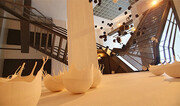 김지아나 작가가 벨기에 보고시앙 재단의 후원을 받아 브뤼셀 아트로프트 갤러리에서 개인전 ‘흙의 연금술사’를 열고 있다. 보고시앙 재단은 레바논 출신의 아르메니아 보석상이었던 로베르 보고시앙과 그의 아들 장, 알베르가 설립해 지역정부와 협력하며 미술교육, 전시 및 작가 후원과 작업 공간 지원을 하고 있다. 도예를 기반으로 가전제품 디자인 협업 등의 작업을 해온 김 작가는 이번 전시에서 흙을 재료로 한 회화, 설치 작품 연작을 선보였다. 흙이 생명과 소멸의 의미를 담고 있다고 보고, 이를 소재로 삶 속에서 사회적 관계에 관한 해석을 시도했다. 설치 작품 ‘기억을 담은 순간’은 구(球) 형태의 자기(포슬린 볼)를 벽면과 천장에 매달았다. 불안하고 가녀린 심성을 의미하는 얇은 도자기 조각과 그 조각에 담긴 빛이 서로 어우러져 커다란 형상을 만든다. 전시장에는 검은색과 흰색의 ‘포슬린 볼’이 대조를 이루며 설치됐다. 김 작가는 미국 파슨스 디자인스쿨을 졸업하고 서울대 대학원에서 박사과정을 수료했다. 흙이 지닌 조형적 가능성에 매료돼 흙과 빛으로부터 받은 영감을 작품에 표현하려는 시도를 꾸준히 해왔다. 아트로프트 갤러리는 한국인 이민영 큐레이터와 길 바우웬스가 2012년에 설립했다. 한국 작가를 유럽에 소개하는 전시를 여러 차례 개최했다. 전광영, 윤성필, 남궁환, 김준, 심문필, 정윤경, 김구림, 민성홍, 남춘모 작가도 이곳에서 전시를 했다. 16일부터 20일까지 열린 프랑스의 아트페어 ‘아시아나우 파리’에서 김지아나 작가의 작품을 선보이기도 했다. 김 작가의 전시는 다음 달 9일까지 열린다. 김민 기자 kimmin@donga.com}