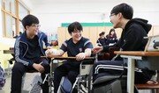 13일 오전 서울 강남구 개원중 2교시 쉬는 시간. 휠체어를 탄 2학년 김상윤 군(14)이 같은 반 우석민 군(14)의 도움을 받아 4층 음악실로 가고 있었다. 선천성 연골종증을 앓고 있어 뼈가 쉽게 부러지는 상윤 군은 잘 걷지 못한다. 얼마 전에는 오른쪽 팔이 골절돼 깁스를 했다. 1년 반째 상윤 군의 도우미를 자처하는 석민 군이 복도의 학생들을 요리조리 피하며 ‘휠체어 운전’을 시작했다. 상윤 군이 “석민이는 1년 반 ‘무사고 택시운전사’”라며 엄지를 세웠다. 석민 군은 “경사로를 오를 때마다 팔 아파 죽어”라면서도 “속이야기를 털어놓을 수 있는 친구가 상윤이”라고 화답했다. 최근 서울 강서구 특수학교 설립 여부를 놓고 어른들은 갈등하지만 개원중 학생들은 자연스레 공존을 깨치고 있다. 일반학교인 개원중은 비장애 학생 700여 명과 장애 학생 12명이 다닌다. 상윤 군과 다른 1명은 일반학급에서 모든 수업을 듣고 나머지 10명은 특수학급과 일반학급을 오가며 공부한다. 개원중이 통합교육 모범학교로 불리게 된 건 최근이다. 3년 전 부임한 나승표 교장은 “비장애 학생에게 장애 학생을 끼워 맞추는 식의 통합교육은 안 된다”고 강조했다. 같은 공간에 함께 있는 것만으로는 부족하고 서로 부대끼며 소통할 때 ‘더불어 사는 삶’이 가능하다는 얘기다. 매 학기 초 비장애 학생과 담임교사는 특수교사로부터 같이 공부할 장애 학생의 특성을 배운다. 매주 축구와 댄스 수업도 장애 학생과 함께한다. 장애 학생을 위한 행사에는 비장애 학생이 반드시 동참한다. 7일 ‘장애인 양재천 걷기 대회’에서도 비장애 학생들은 스스로 만든 응원 손팻말을 들고 함께 걸었다. 5월 한 반에서 장애 학생을 멀리하는 조짐이 보이자 청각장애인 교육교사를 초청해 장애아에 대한 이해를 돕는 강연을 듣게 했다. 지적장애 1급 딸이 개원중에 다닌다는 한 어머니는 “특수학교에 자녀를 보낸 학부모들도 우리를 부러워한다”고 말했다. 학교에 들어가기 전부터 통합교육을 배우는 곳도 있다. 서울 동작구 구립 상도어린이집에서는 2012년부터 매주 삼성학교 청각장애 아동 6명이 찾아와 함께 지낸다. 15일 오전 요리시간. 청각장애가 있는 김예리 양(5)이 선생님 말을 알아듣지 못해 단무지를 빼고 김밥을 말았다. 윤희주 양(5)이 예리 양을 정면으로 보며 “단무지를 넣어서 만들래”라고 또박또박 말했다. 희주 양의 입 모양을 보고 뜻을 알아차린 예리 양은 고개를 끄덕이더니 김밥에 단무지를 넣었다. 아이들은 눈빛과 몸짓으로 말이 통했다. 놀이시간에 징을 치던 홍서우 양(6)이 혼자 놀던 청각장애아 이하엘 군(6)에게 장구채를 쥐여줬다. 징을 한 번 치곤 하엘 군을 슬쩍 바라보니 하엘 군이 알았다는 듯 장구를 쳤다. 징과 장구 소리가 묘하게 어울렸다. 이완정 인하대 아동심리학과 교수는 “아이들은 장애아를 그저 조금 ‘다른’ 친구로 받아들일 뿐”이라며 “장애에 대한 고정관념을 담은 어른들의 언행이 아이들로 하여금 장애에 대한 편견을 갖게 한다”고 지적했다.구특교 kootg@donga.com·이지훈 기자}