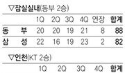김주성 프로 첫 700블록슛LG 문태영 41점-15R 맹활약프로 스포츠의 세계에서는 남들보다 확실히 잘하는 뭔가가 있어야 한다. 그래야 살아남을 수 있다. 이것저것 어중간히 하는 것보다는 한 가지라도 상대를 압도할 수 있는 주무기가 있어야 한다. 동부는 18일 잠실학생체육관에서 열린 SK와의 방문경기에서 이런 점을 다시 한 번 입증해 보였다. 동부는 전날까지 13경기에서 평균 실점 76.9점으로 10개 팀 중 실점이 가정 적은 팀이었다. 평균 득점(80.8점)은 7위에 불과하지만 수비력 덕분에 시즌 초 KT와 선두 경쟁을 벌이고 있다. 동부는 이날도 탄탄한 수비력을 앞세워 90-75로 승리했다. 10승(4패)째를 거둔 동부는 KT와 공동 선두가 됐다. 동부는 1쿼터에서 SK의 3점슛을 막지 못해 17-21로 뒤졌다. 하지만 동부 선수들은 경기 전 “찰거머리 수비로 승부를 걸겠다”던 강동희 감독의 말이 빈말이 아님을 입증하듯 2쿼터 들어 수비 조직력이 살아나면서 단숨에 경기를 뒤집었다. 동부는 1 대1 밀착 수비뿐 아니라 바꿔 막기가 톱니바퀴처럼 맞아 들어가면서 SK 공격을 철저히 차단했다. 동부는 2쿼터(10실점)와 3쿼터(18실점)에서 SK 득점을 각각 10점대로 막는 대신 54점을 몰아넣어 일찌감치 승부를 갈랐다. 동부 포워드 마퀸 챈들러는 양 팀 최다인 30점을 넣으며 공격을 이끌었다. 블록슛 2개를 보탠 동부 김주성(10득점)은 통산 700블록슛을 기록했다. 700블록슛은 국내 프로농구 1호. SK는 4쿼터 들어 문경은(11득점)이 3점슛 3개를 넣으며 따라붙었지만 점수 차를 좁히는 데 만족해야 했다. 전날까지 공동 5위였던 SK는 2연패를 당하며 7승 7패가 돼 7위로 떨어졌다. 창원에서는 홈팀 LG가 KT&G를 98-88로 누르고 10승 5패로 단독 3위가 됐다. LG의 귀화 혼혈 선수 문태영은 41득점 15리바운드 6어시스트로 맹활약하며 승리를 이끌었다. 9위 KT&G는 3승 10패가 됐다. 이종석 기자 wing@donga.com}