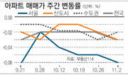 취득세 감면 효과로 10월 서울 아파트 거래량이 3800여 건으로 전달보다 81% 급증했다. 하지만 저렴한 급매물이 거래된 뒤 수요자들이 관망세로 돌아서면서 다시 주춤하고 있다. 부동산114에 따르면 지난 한 주간 서울 아파트값은 0.06% 하락했다. 신도시(―0.03%)와 서울과 신도시를 제외한 수도권(―0.02%)도 급매물만 간간이 거래될 뿐 조용한 분위기를 이어갔다. 서울에서는 강동(―0.14%), 강남(―0.10%), 송파(―0.09%), 서초(―0.08%), 양천구(―0.07%) 순으로 매매가격이 떨어졌다. 전세시장에서는 서울(0.05%)의 상승세가 이어졌다. 가을 이사 수요는 줄었으나 전세 재계약으로 매물 자체가 많지 않아 가격이 계속 상승했다. 특히 서초구는 전세 물건이 부족한 가운데 재건축 이주 수요까지 겹쳐 전세금 추가 상승을 예상한 집주인들이 전세금을 크게 높인 매물을 내놓고 있어 상승세가 더 가파르다.장윤정 기자 yunjung@donga.com}