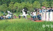충남 예산의 황새공원에서 사육 중이던 황새 8마리가 3일 자연에 방사됐다. 국내에서 멸종됐던 황새가 복원돼 방사된 것은 이번이 처음이다. 1994년 유일하게 서울대공원에 남아 있던 황새가 멸종한 지 21년 만이다. 자연의 품에 안긴 황새들이 제대로 적응할지, 어디에 어떻게 둥지를 틀지 연구자들은 초미의 관심을 보이고 있다.○ 최초의 자연 방사 3일 오후 3시 예산군 광시면 시목대리길 황새공원에서 방사될 황새는 다 자란 6마리와 올해 태어난 2마리 등 총 8마리다. 6마리는 케이지를 이용해 방사 장소로 옮긴 뒤에 방사됐고 나머지 2마리는 서식 중인 방사장에서 지붕을 열어 날려 보냈다. 황새공원은 이들 황새가 야생에서 성공적으로 살아갈 수 있도록 비행 및 먹이적응 훈련 등을 시켜왔다. 야생화 훈련장에서 연속 2km 이상 비행하는 훈련도 했고 넓은 수조에서 미꾸라지와 붕어, 메기 등을 직접 사냥하는 연습도 했다. 몸에 상처가 있는지 신체 기능에 이상은 없는지 미리 건강검진도 마쳤다. 자연에 익숙하지 않은 황새들이 갑작스럽게 위험에 닥칠 경우에 대비한 조치도 취해졌다. 각 황새에는 망원경으로 식별할 수 있도록 숫자가 기록된 가락지와 위성추적이 가능한 장치를 부착했다. 황새 복원을 담당했던 한국교원대는 논과 하천에서 서식하는 조류 생태계에서 최상위 포식자인 백로·왜가리가 황새로 인해 지위가 흔들릴지 촉각을 세우고 있다. 황새공원 관계자는 “황새는 이동성이 큰 조류이기 때문에 방사된 황새들이 초반에는 공원 주변에서 머물 것으로 보이지만 기온 등 서식 환경이 바뀌면 어디로 얼마나 이동할지는 예측할 수 없다”고 말했다.○ ‘황새의 고장’ 자리매김한 예산군 “집 옆 아름드리 소나무에 황새 새끼가 있었는디, 어느 날 밤 감쪽같이 사라져 버렸어. 당시 황새 새끼를 팔면 큰돈을 번다는 소문이 돌았는디, 외지인들의 소행이 분명혀. 당시 밤새 어미아비 황새 우는 소리로 동네가 떠나갈 것 같았어….” 2009년 충남 예산군 대술면 궐곡리의 이예순 할머니(당시 96세·작고)가 황새공원 유치를 준비하던 예산군에 증언한 6·25전쟁 이전 예산의 모습이다. 예산군은 그해 문화재청의 황새마을 공모사업에 이 할머니의 증언과 ‘천연기념물 제199호 황새 번식지’라고 쓰인 마을 비석 등을 제시해 황새공원 사업자로 지정됐다. 그동안 190억 원을 들여 13만5669m² 터에 황새공원을 조성해 6월 9일 개원했다. 개관을 앞두고 황새 새끼 7마리가 자연 부화하는 겹경사도 맞았다. 지난해 6월 한국교원대 황새생태연구원에서 들여온 황새 60마리 가운데 두 쌍이 2월 26일 첫 산란에 성공한 데 이어 37일간의 부화기간을 거쳐 건강한 새끼가 태어난 것이다. 황선봉 예산군수는 “현재 황새 74마리가 사육되고 있는 황새공원에는 6월 개원 이후 2만여 명의 관광객이 찾을 정도로 많은 관심을 받고 있다”며 “3일은 예산군이 명실공히 다시 황새의 고향이 된 날”이라고 말했다. 황새공원은 내년부터 2018년까지 매년 황새 10마리씩을 자연에 방사할 계획이다.지명훈 기자 mhjee@donga.com}
