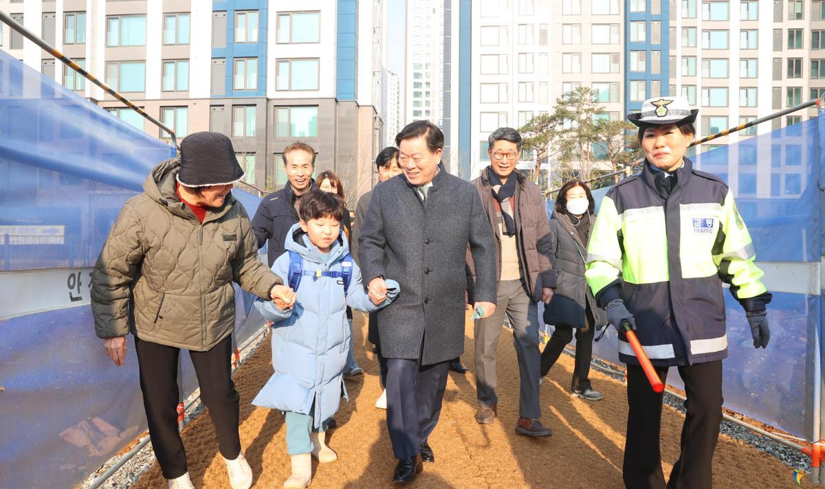 경기 광명시가 광명초등학교 학생들의 안전한 등하교를 위해 임시 통학로를 정비한다고 12일 밝혔다.광명시는 학생들이 광명초 인근 광명 제4·5R 구역 재개발 공사로 정비되지 않은 먼 길을 돌아서 통학해야 하는 안전 문제를 해결하기 위해 임시 통학로를 정비하기로 했다.지난해 12월 입주한 트리우스광명에 사는 학생들은 올해 1학기 광명 제4·5R 구역 사이 광이로를 이용해 통학했다. 하지만, 공사로 통학로가 폐쇄되면서 2학기부터는 광명 제4 R 구역을 돌아 등하교해야 한다.박승원 광명시장이 그동안 광명초 학부모들과 지속적으로 협의하며 문제 해결에 나섰고, 이달 11일 관계 부서장 회의를 거쳐 우회로를 정비해 안전한 통학환경을 마련하기로 결정했다.광명시는 광명 제4 R 구역에 조성되는 아파트 단지 외곽 도로 ‘사성로2번길’과 ‘광명로928번길’ 약 900m 구간에 보도를 우선 정비해 통학로로 개방하기로 했다. 안전보안관 14명과 교통봉사대 8명 등 안전 인력을 배치해 등하교 시간 안전 관리를 강화하고, 이르면 10월 광명 제4·5R 구역 사이 기존 임시 통학로였던 광이로의 보도도 우선 설치한다.박 시장도 학생들의 안전 통학을 위해 2학기 개학 첫날인 18일부터 등교 현장으로 바로 출근해 학생들의 안전을 직접 챙기고 수시로 현장 확인에 나선다.박 시장은 “아이들이 매일 이용하는 등하굣길은 그 어느 곳보다 안전해야 한다”라며 “임시 통학로 조성과 안전요원 확충으로 학부모와 학생 모두가 안심할 수 있도록 지원을 아끼지 않겠다”라고 밝혔다.조영달 기자 dalsarang@donga.com}