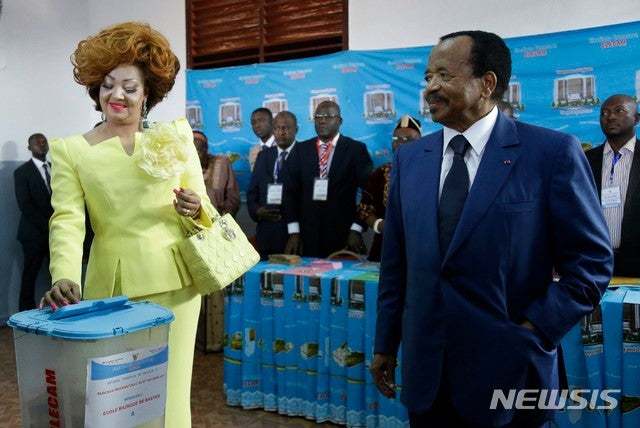 세계 최고령 국가 원수인 폴 비야(92) 카메룬 대통령이 이번 대통령 선거에 당선되면서 8번 연속 대통령직을 수행하게 됐다. 카메룬 헌법위원회는 27일(현지시간) 비야 대통령이 지난 12일 치른 대선의 공식 개표 결과 53.66%의 득표율로 당선이 확정됐다고 발표했다.1982년부터 43년간 장기 집권한 비야 대통령이 대선 승리로 올해 말부터 또 다른 7년 임기를 확보하며 99세까지 카메룬을 통치할 전망이다.김형민 기자 kalssam35@donga.com}