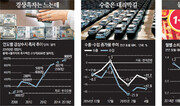 수출 부진에도 경상수지 흑자가 쌓이고 이 때문에 원화 가치가 올라 경제에 부담을 주는 ‘불황형 흑자’ 현상이 3, 4년째 이어지고 있다. 이 같은 불황의 악순환은 1990년대 초반 일본이 장기 불황에 빠져들기 직전의 경제 상황과 매우 유사하다는 점에서 우려의 목소리가 커지고 있다. 게다가 불황형 흑자로 달러가 넘쳐나면서 원화가 엔화에 비해 강세를 보이면서 한국의 수출경쟁력은 빠른 속도로 악화되고 있다. 2일 한국은행에 따르면 올해 4월 경상수지는 81억4000만 달러 흑자를 내면서 2012년 3월 이후 38개월 연속 흑자 행진을 이어갔다. 흑자 기간으로 보면 ‘3저(低·저금리 저유가 저원화) 호황’ 시기였던 1986년 6월∼1989년 7월과 같은 기록이다. 경상수지 흑자는 5월에도 이어져 새 기록을 달성할 것이 확실시된다. 문제는 과거와 비교했을 때 요즘 흑자의 질(質)이 형편없이 떨어진다는 데 있다. 수출이 전년 대비 30∼50%씩 불어나던 1980년대 후반과 달리 최근에는 수출과 수입이 함께 급감하는 불황형 흑자다. 올해 1∼4월 수출은 1859억 달러로 작년 동기 대비 11.2% 감소했지만 수입은 이보다 더 많은 18.2%나 줄어 기형적 흑자 기조를 이어가고 있다. 이런 방식으로 경상수지는 2013년에 이어 지난해에도 892억2000만 달러 흑자로 기록을 경신했고 올해에는 1000억 달러 흑자를 바라보고 있다. 국내총생산(GDP) 대비 7%에 이르는 규모다. 유가 하락 등 외부 요인이 있긴 하지만 수입량 감소는 무엇보다 국내 경기의 부진이 가장 큰 원인이다. 투자와 소비가 침체돼 해외 원재료와 수입품의 수요가 떨어지는 것이다. 곽영훈 하나금융경영연구소 연구위원은 수출이 주는데도 내수가 더 안 좋아 경상흑자가 커지고 원화 가치가 오르는 ‘원고(高) 불황’이라고 현재 상황을 진단했다. 막대한 경상수지 흑자는 외환시장에서 원화 가치 상승 압력으로 작용하고 있다. 2일 원-엔 환율(오후 3시 현재)은 100엔당 892.49원으로 하락(원화 가치는 상승)했다. 2008년 2월 말 이후 최저치다. 4월 말 한때 900원 선이 붕괴된 원-엔 환율은 지난달 27일 다시 900원 밑으로 뚫고 내려온 뒤 하락세를 보이며 연일 최저 기록을 경신하고 있다. 성태윤 연세대 교수는 “저물가와 불황형 흑자가 동시에 나타나는 현재의 양상은 장기 불황 초입에 들어섰던 1990년대 일본과 흡사하다”며 “금리 인하 등 과감한 통화정책이 절실하다”고 말했다.유재동 기자 jarrett@donga.com}