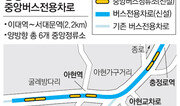 서울 중구와 마포구를 이었던 아현고가도로가 철거된 자리에 ‘충정로 중앙버스전용차로’가 설치돼 다음 달 1일 개통한다. 이 버스전용차로는 신촌·마포와 충정로를 잇는 2.2km 구간에 설치됐고, 버스 노선 35개가 통과한다. 서울시는 차로를 개편하며 신촌에서 시청 방면으로 우회전하는 버스가 많은 것을 감안해 아현삼거리와 충정로삼거리에 버스 전용 우회전 신호를 설치했다. 교차로 ‘꼬리물기’를 방지하기 위해 차량 속도가 5km 이하로 떨어져 정체되면 빨간불로 바뀌는 신호 시스템도 운영할 계획이다. 버스전용차로 개통으로 일대 버스 속도가 기존 시속 17.2km에서 22.9km로, 약 33% 빨라질 것으로 서울시는 예측했다. 서울시는 신촌로 웨딩타운 구간에 있는 육교를 철거하는 대신 중앙정류소를 통과해 양편 인도를 연결하는 횡단보도 3개를 추가로 설치했다. 지하철2호선 아현역 환풍구 주변에는 추락 사고를 방지하기 위해 강화유리벽을 설치했다. 이번 충정로 중앙버스전용차로 연장으로 서울시내 버스전용차로는 총 117.5km로 늘었다.황인찬 기자 hic@donga.com}