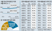 서울지역 221개 고교(자율형사립고 23곳, 일반고 198곳) 중 일반고는 문과 비중이 63.9%로 이과보다 훨씬 높은 반면 자사고는 이과 비중이 55%를 넘는 것으로 나타났다. 이는 동아일보가 5일 종로학원하늘교육과 공동으로 수능 수학과 과학탐구·사회탐구 과목 응시자 수를 기준으로 분석 집계한 것이다. 서울지역 고교의 문·이과 비중이 수치로 집계된 건 처음이다. 교육부가 4월부터 프라임(산업 연계 교육 활성화 선도 대학) 사업을 추진하는 등 대학 이공계 확대 정책을 추진하고 있지만 일반고에서는 오히려 문과 비중이 늘고 있어 문과생들은 입시부터 취업까지 불리한 구조에 놓일 수밖에 없다는 사실이 확인됐다. 대학 입학 정원도 이과 계열이 문과보다 많지만 2013∼2015년 일반고 문과 비율은 62.6%, 63.8%, 63.9%로 계속 증가하는 추세다. ‘인구론’(인문계 90%가 논다)이 틀린 말이 아닌 셈이다. 게다가 일반고에선 이과를 희망해도 수학, 과학 교사를 배치하지 못하면서 문과 선택을 강요하는 현상까지 있는 것으로 파악됐다. 반면 서울지역 자율형사립고는 발 빠르게 이과 비중을 높여 지난해에는 55.8%에 달한 것으로 조사됐다. 특히 이과 비중이 높은 10개 고교 중 8곳이 자사고인 반면 문과 비중이 높은 10개 고교는 모두 일반고로 드러났다. 최예나 기자 yena@donga.com}