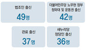 《 20대 국회는 법조인, 관료 등으로 연결된 인연의 강도가 가장 강했다. 상당수 엘리트 집단에서 지연이나 학연을 통해 주류가 형성되는 것과는 다소 차이가 있다. 본보와 함께 조사에 참여한 이원재 KAIST 교수는 “우리 사회 엘리트인 국회의원의 기본 스펙이 대부분 비슷하기 때문에 출신 직업 등으로 내부 분화가 이뤄진 것으로 볼 수 있다”고 설명했다. 여야 의원들이 서로 한데 어우러진 그룹은 법조인과 관료 출신 그룹이다. 출신 대학이 같고 전공, 고시 기수 등이 겹치면서 소속 당보다 강한 결속력을 가져온 것으로 보인다. 20대 의원 중 법조인 출신은 49명으로 출신 직업 중 가장 많은 의원을 배출했다. 국회의 주요 충원 경로 중 하나인 법조인 출신은 19대 국회(42명)보다는 7명 늘었지만 18대(59명), 17대(54명)보다는 적었다. 의원들의 관계가 돈독할수록 인맥지도상에 굵은 선으로 나타난다. 새누리당 이주영 의원과 더불어민주당 진영 의원은 경기고, 서울대, 법학 전공, 법조인, 판사, 60대, 남성 등의 항목이 일치한다. 국민의당 박주선 천정배 이용주 의원은 서울대 법대 동문인 데다 호남 출신이라는 연결고리가 작용하고 있다. 새누리당 김진태, 더민주당 송기헌 의원은 사법시험 28회 동기다. 검사 출신인 새누리당 최교일 권성동 곽상도 김도읍, 국민의당 김경진 의원 등도 법조 인맥으로 얽혀 있다. 》 관료 출신 그룹은 37명 중 27명이 새누리당 소속 의원이다. 새누리당이 관료 출신 인사들을 선호하는 데다 친박계 핵심이자 경제부총리 겸 기획재정부 장관을 지낸 최경환 의원의 영향력도 일부 반영된 것이라는 해석이 나온다. 산업통상자원부 장관을 지낸 윤상직 의원과 국무조정실장을 지낸 추경호 의원은 당내에서 ‘최경환 사단’으로 분류된다. 윤 의원은 최 의원의 고향(경북 경산) 후배이기도 하다. 추 의원은 최 의원과 경제기획원(현 기획재정부)에서 함께 근무했다. 인맥지도상 최 의원은 윤 의원은 물론이고 같은 기재부 출신인 김광림 이종구 의원, 연세대 동문인 박명재 의원과도 연결된 점이 눈에 띈다. 야권에선 노무현 정부에서 각각 경제부총리 겸 재정경제부 장관과 기획예산처 장관을 지낸 더민주당 김진표 의원과 국민의당 장병완 의원이 있지만 그룹 내 새누리당이 다수를 차지하는 만큼 주변부에 위치해 있다. 지도상에 굵은 선으로 연결된 새누리당 이종배 곽대훈 정태옥 의원은 모두 고려대 출신이다. △이종구-정우택(경기고) △이종배-정태옥-곽대훈(고려대) △박완수-박성중(행시 23회) △이명수-박찬우 의원(성균관대) 등도 인맥이 연결돼 있다. 새누리당 정당인 출신 그룹도 몰려 있다. 이들 대부분은 국회의원 보좌진 출신이거나 당직자, 지방의원 및 지방자치단체장 출신이다. 김무성 이정현 정병국 의원 등은 당직자, 김학용 이장우 김태흠 유의동 김선동 의원 등은 국회 보좌진, 황영철 이우현 원유철 강석진 안상수 의원 등은 지방의원 및 지자체장 출신이다. 더민주당의 노무현 청와대 출신이거나 운동권 출신을 일컫는 ‘친노(친노무현)·운동권’ 인사들의 인맥도 두드러진다. 전해철 윤후덕 박재호 정재호 황희 권칠승 의원 등은 청와대에서 함께 근무했다. 한 의원은 “‘참정회(참여정부 출신 정치인 모임)’라는 이름으로 종종 모였던 인사 20명가량이 20대 국회 입성에 성공했다”고 전했다. 대학 학생회 간부 등 운동권 출신도 20여 명 된다. 강병원(서울대), 송영길 우상호(연세대), 김영춘 이인영(고려대), 유은혜 기동민 박완주 박용진(성균관대), 홍익표(한양대) 등이 대표적이다. 다른 의원들과의 인연이 가장 많은 ‘마당발’ 의원은 당별로 새누리당에선 윤상현, 더민주당에선 고용진, 국민의당에선 김성식 의원인 것으로 나타났다. 윤 의원이 50대 의원으로 새누리당 정당인 출신인 데다 충청 출신, 3선 의원 등 평균적인 그룹에 많이 속한 점이 감안된 것으로 보인다. 이 교수는 “윤 의원은 향후 정치권 전체를 아우를 수 있는 확장성이 높지만 일찌감치 골수 친박(친박근혜)으로 스스로를 정의한 건 확장성을 깎아 먹는 것”이라고 설명했다. 서울 출신에 손학규계로 분류되지만 노무현 청와대에서 행정관을 지낸 더민주당의 고용진 의원, 부산 출신으로 한나라당(현 새누리당) 출신인 김성식 의원도 마당발로 꼽혔다. ‘이 사람을 통하지 않고는 다른 그룹과 연결되지 않는다’는 의미의 연결중심성 수치는 각 당 의원 중 새누리당 하태경, 더민주당 김한정, 국민의당 박주현 의원이 가장 높았다. 이들 대부분 당내에서 이색 이력을 가진 경우로 중개인(broker) 역할을 할 수 있다는 것이다. 하 의원은 새누리당 내 몇 안 되는 운동권 출신이다. 김 의원은 경남 함안 출신이지만 김대중 정부 당시 청와대 제1부속실장을 지냈다. 여성인 박 의원도 국민의당 내에서 몇 안 되는 노무현 정부 청와대 출신(참여혁신수석비서관)이다.황형준 constant25@donga.com·류병수 기자}
