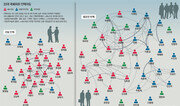 20대 국회는 법조인(49명), 더불어민주당의 노무현 정부 시절 청와대 및 운동권 출신(42명), 관료 출신(37명), 새누리당의 정당인 출신(36명) 등 4개 그룹 내의 연결고리가 끈끈한 것으로 나타났다. 국회의원 300명 중 절반이 넘는 160여 명이 4개 그룹에 속해 있다는 얘기다. 이는 동아일보가 KAIST 문화기술대학원 이원재 교수와 공동으로 31일 20대 국회의원 전원에 대한 사회관계망 분석(SNA·Social Network Analysis)을 실시한 결과다. 성별, 나이, 출신지(광역), 출신지(기초), 출신 고교 및 대학, 학부 전공, 직업, 소속 정당, 선수(選數) 등 13가지 프로필 항목의 일치 여부를 심층 조사했다. 이 교수는 “의원들이 (입법 등) 협력이 필요할 때 자신들의 인맥을 바탕으로 사람을 찾다 보니 그룹별 집단이 나타난 것으로 보인다”며 “이들 집단에 권력의 기회가 많은 것으로 보인다”고 설명했다. 이번 조사에서 의원들은 평균적으로 13개 항목 중 4개 항목이 같았다. 소속 상임위원회 등 수면 위로 드러난 관계 외에 ‘비공식 네트워크’를 통해 선후배 등의 관계가 형성돼 있다는 얘기다. 이들은 법안 제출 시 공동발의자로 나서거나 연구모임, 토론회 개최 등 입법 활동에 긴밀히 협력한다. 반면 나눠먹기 등 검은 커넥션으로 이어질 수 있다는 지적이 나온다. 국회의 인재 충원 경로가 법조인, 관료, 당직자 등으로 정형화되면서 끼리끼리의 ‘막후정치’로 흐르는 것 아니냐는 비판도 있다. 김형준 명지대 교수(정치학)는 “결국 20대 국회에서도 ‘그들만의 리그’가 계속되고 있다”며 “상향식 공천(오픈 프라이머리) 같은 제도가 도입돼야 이 틀이 깨질 수 있을 것”이라고 조언했다.황형준 constant25@donga.com·김아연 기자}