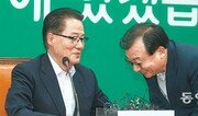 호남 출신인 새누리당 이정현 신임 대표와 국민의당 박지원 비상대책위원장 겸 원내대표가 11일 상견례에서 미묘한 신경전을 벌였다. 박 위원장은 이날 당 대표실로 찾아온 이 대표에게 “정의는 새누리당 의원들에게만 해당되는 것이고 야당은 야당답게 대통령에게 드릴 말을 드리겠다”고 말했다. 이에 이 대표는 “독하고 무서운 야당”이라면서도 “(박 위원장은) 절대로 쥐를 끝까지 몰지 않고 항상 퇴로를 열어준다”며 우회적으로 협조를 요청했다. 덕담도 주고받았다. 이 대표는 “도저히 넘을 수 없는 열정의 딱 한 분이라고 하면 항상 박 위원장을 생각하고 늘 본받고 있다”고 치켜세웠다. 박 위원장도 “김대중 전 대통령의 박지원이라면 박근혜 대통령의 이정현”이라고 화답했다. 황형준 기자 constant25@donga.com}