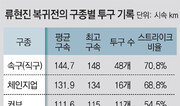 640일 만에 메이저리그에 복귀한 류현진(29·LA 다저스)이 패전 투수가 됐다. 류현진은 8일 안방경기에서 샌디에이고를 상대로 어깨 수술 이후 처음으로 빅리그 마운드에 섰다. 결과는 좋지 않았다. 류현진은 이날 4와 3분의 2이닝 동안 안타 8개를 얻어맞고 6실점 했다. 6점 모두 자책점이었다. 삼진 4개를 잡는 동안 볼넷은 2개를 내줬다. 고의볼넷으로 던진 공 4개를 빼면 총 85개를 던졌고 그중 55개(64.7%)가 스트라이크였다. 류현진은 이날 1회부터 선두 타자 멜빈 업턴 주니어(32)에게 홈런을 내준 뒤 3회를 제외하면 매 이닝 점수를 내줬다. 이 중 가장 아쉬운 건 5회였다. 첫 두 타자를 잘 잡고 이닝을 시작했지만 결국 3점을 내줬기 때문이다. 류현진이 먼저 2루타 두 개를 연속해 얻어맞았고 이어진 2사 1, 2루 위기에서는 다저스 우익수 야시엘 푸이그(26)가 뜬공 처리 과정에서 위치 선정을 잘못하는 바람에 주자 2명이 모두 홈 플레이트를 밟았다. 짧은 타구가 날아오는 줄 알고 푸이그가 앞으로 뛰는 바람에 평범한 뜬공이 우익수 키를 넘기는 3루타가 됐다. 이 실책성 플레이로 류현진도 마운드에서 내려와야 했다. 속도는 나쁘지 않았다. 류현진은 1회초 마운드에 오르자마자 시속 145km짜리 빠른 공(속구)을 던졌다. 이후로도 속구 평균 속도 시속 144.7km를 유지했다. 최고 구속도 트레이닝 전문가들이 메이저리그 복귀 조건으로 꼽은 시속 148km에 도달했다. 문제는 체력이었다. 4회까지 평균 시속 145.3km를 기록하던 빠른 공 속도가 5회 들어서는 140.6km로 내려갔다. 투구 수가 70개를 넘어간 시점이었다. 5회초 2사 1, 2루에서 샌디에이고 6번 타자 알렉스 디커슨(26)에게 2타점 3루타를 얻어맞은 빠른 공은 시속 137km밖에 되지 않았다. 코스도 가운데로 몰린 공이었다. 푸이그의 타구 판단도 아쉽지만 류현진이 치기 좋은 공을 던진 것도 사실이었다. 경기 후 류현진은 “더 좋은 경기를 펼쳤으면 좋았겠지만 당장은 아프지 않다는 걸로 만족한다”면서 “나는 원래 강한 볼을 던지던 투수는 아니었다. 가장 좋았을 때보다 구속이 떨어졌지만 지금 속도로 꾸준히 던질 수 있도록 보완하겠다”고 말했다. 데이브 로버츠 다저스 감독은 “일단 류현진이 마운드에 오른 것 자체만으로 대단한 일”이라며 “내일 어깨 상태가 더 중요하다. 평소에 투구한 다음 날 뻐근했던 그 정도로만 통증을 느끼길 바란다”고 말했다.황규인 기자 kini@donga.com}