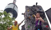25일 오전 서울 N서울타워 팔각정광장에서 열린 ‘2014 아디다스 락스타 서울’ 암벽타기 대회에서 세계적인 암벽등반가 사샤 디줄리안(오른쪽)과 국내 남자 암벽타기 1인자 민현빈이 시범을 보이고 있다. 최혁중 기자 sajinman@donga.com}