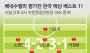 이동국(35·전북)과 손흥민(22·레버쿠젠)의 '국-민 조합'이 축구대표팀 자존심 회복에 나선다. 대표팀은 5일 오후 8시 부천종합운동장에서 베네수엘라와 평가전을 갖는다. 대표팀은 브라질 월드컵에서 1무 2패로 부진하며 16강 진출에 실패했다. 홍명보 전 대표팀 감독은 사퇴했다. 아직 새 감독을 구하지 못한 대표팀은 임시 선장인 신태용 코치 지휘아래 이번 평가전을 치른다. 베네수엘라는 국제축구연맹(FIFA)랭킹 29위로 한국(57위)보다 앞서 있다. 이번에 오는 선수 절반가량이 유럽무대에서 활약하고 있다. 러시아 프로축구 제니트에서 활약 중인 살로몬 론돈이 공격선봉에 나설 것으로 보인다. 이번 평가전에서 가장 관심을 끄는 것은 대표팀 '맏형' 이동국과 '막내' 손흥민의 조합이다. 이동국은 원톱 최전방 공격수로, 손흥민은 왼쪽 측면 미드필더로 베네수엘라의 골문을 공략할 전망이다. 한국 축구를 대표하는 두 선수가 함께 뛰는 것은 1년 6개월 만이다. 이동국과 손흥민은 지난해 3월 월드컵 아시아 최종예선 카타르 전(2-1·승)에서 호흡을 맞췄다. 당시 손흥민은 1-1 동점 상황에서 이동국의 슈팅이 골대를 맞고 나온 것을 골로 연결했다. 두 선수 기량은 현재 최고조에 이르렀다. 노장 이동국은 '이동국의 시간은 거꾸로 간다'는 평가가 나올 정도로 제2의 전성기를 구가하고 있다. 이동국은 4일 현재 K리그 클래식에서 22경기 11득점으로 득점 선두를 달리고 있다. 이동국의 활약에 힘입어 소속팀 전북은 리그 선두를 질주 중이다. 특히 A매치 99경기(30골) 출전을 기록 중인 이동국은 베네수엘라와의 평가전에 출전하면 A매치 100경기에 출전한 선수들의 모임인 '센추리 클럽'에도 가입한다. 한국 선수로는 9번째 가입이다. 이동국은 "이번 평가전에서는 수비보다는 공격적으로 나설 계획이다. 조직적인 훈련은 부족한 상황이지만 개인의 능력을 바탕으로 경기를 잘 풀어나가야 할 것이다"고 말했다. 손흥민도 소속팀에서 벌써 시즌 3호 골을 넣으며 월드컵에서의 활약이 운이 아니었음을 증명하고 있다. 소속팀의 차출 거부로 인천 아시아경기에 출전하지는 못하지만 이번 평가전에서 아쉬움을 털어버리겠다는 각오다. 손흥민은 "모든 축구 선수의 꿈은 태극마크를 달고 더 많은 A매치에 나서는 것이다. 그런 의미에서 이동국 선배는 존경스럽다. 나 역시 나이가 들어서도 몸 관리를 잘해 이동국 선배처럼 좋은 모습을 보여주고 싶다"고 말했다.김동욱 기자 creating@donga.com}