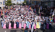 2018평창겨울올림픽 개막을 100여 일 앞두고 28일 강원 강릉에서는 이를 축하하는 다양한 이벤트가 열려 올림픽 열기를 고조시켰다. 강릉은 평창올림픽 때 모든 빙상 종목 경기가 열리는 곳이다. 이날 오후 강릉역∼옥가로∼경강로∼강릉대도호부관아 1.7km 구간에서는 2018명이 한복을 입고 행진하는 ‘대한민국 한복퍼레이드’가 열렸다. 이날 행사에는 강릉 문성고 마칭밴드 학생 35명이 한복을 입고 선두에서 행렬을 이끈 것을 비롯해 해람중 학생 100여 명, 강릉국악협회 회원 10여 명, 강릉원주대 외국인 유학생 70여 명도 참가했다. 퍼레이드와 함께 강릉대도호부사 행차도 재현됐다. 취타대와 부사 수행, 금군(禁軍), 풍물패 등 150여 명이 전통 복장을 입고 조선시대 때 행해진 전통군사 행진을 펼쳤다. 이 행사에는 8군수 지원단 장병 80여 명도 참가했다. 강릉시청 대강당에서는 평창올림픽 G―100일 기념 ‘DECODA 챔버앙상블’ 특별공연이 진행됐다. 연주자들은 비발디 ‘사계’, 비제 ‘카르멘’, 브람스의 ‘헝가리 무곡’, 엘가 ‘사랑의 인사’ 등 일반인에게 친숙한 곡들을 들려줬다. 강릉대도호부 관아 일원에는 경로행사인 ‘청춘경로회’가 재현됐다. 강릉지역 고유 풍속으로 매년 좋은 절후를 만나면 70세 이상 된 사람을 초청해 경치 좋은 곳에 모아놓고 위로하던 행사다. 읍면동별 대표 어르신 21명이 초청됐다. 또 강릉대도호부 관아 앞에서는 올림픽 특선 음식인 옹심이와 삼계탕 시식 코너가 운영되기도 했다. 28, 29일 강릉 월화거리 풍물시장 일원에서는 강릉문화재단 주최로 ‘헬로 할로윈’ 행사가 이어졌다. 강릉시 관계자는 “올림픽 개최 100일을 앞두고 이번 문화행사를 통해 올림픽 참여 열기가 확산될 것으로 기대한다”며 “성공적인 올림픽이 될 수 있도록 완벽하게 준비를 마무리하겠다”고 밝혔다. 이인모 기자 imlee@donga.com}
