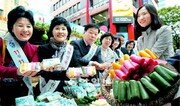 농협을 비롯한 농업 관련 단체 관계자들이 7일 서울 중구 명동거리에서 행인들에게 가래떡을 나눠주고 있다. 이들은 매년 11월 11일 ‘빼빼로데이’에 맞서 가래떡 먹기 운동을 펼치며 우리 쌀 소비를 홍보하고 있다. 원대연 기자 yeon72@donga.com}
