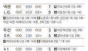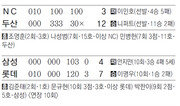 프로야구 두산은 28일 잠실구장에서 NC를 12-3으로 꺾고 올 시즌 화요일 12전 전승(승률 1.000) 기록을 이어갔다. 특정 요일 전승 기록을 유지하고 있는 건 화요일의 두산 한 팀뿐이다. 두산 선발 니퍼트(35)는 11승(2패)으로 다승 단독 1위에 올랐다. 전날까지 니퍼트와 다승 공동 1위였던 넥센 신재영(27)은 안방에서 한화 타선에 3이닝 7실점으로 무너지며 평균자책점 1위 자리에서도 내려왔다. 사직에서는 롯데가 마무리 손승락(34)이 올 시즌 개인 첫 번째 블론 세이브를 기록했지만 문규현(33)이 10회말 올 시즌 개인 첫 번째 끝내기 홈런(3점)을 터뜨려 삼성을 7-4로 이겼다. SK 최승준(28)은 이날 수원에서 개인 통산 첫 번째 3연타석 홈런을 터뜨렸다. 4연타석 홈런에 도전한 8회에는 좌익수 뜬공으로 물러났다. 황규인 기자 kini@donga.com}