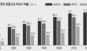 올해 처음으로 고등학교에서도 여교사 비율이 남교사를 앞선 것으로 나타났다. 학교알리미와 교육부 정보공시 자료에 따르면 올해 전국 고교에서 여교사 비율은 50.4%(6만9299명)로 남자 교사를 앞섰다. 교육통계를 집계하기 시작한 1970년 이후 처음으로 고교에서 남교사 수(6만8158명)를 앞선 것. 고교에서 여교사 비율은 2012년 47.9%, 2013년 48.7%, 2014년 49.4%로 계속 증가해왔다. 특히 수도권에서 여교사 강세가 두드러졌다. 고교 여교사 비율이 가장 높은 경기지역은 여교사가 60%(2만35명)에 달했다. 서울도 여교사 비율이 50.6%(1만1912명)로 남교사보다 많았다. 반면 전북은 여교사 비율이 39.9%(2256명)로 전국에서 가장 낮았다. 학교에서 여교사 비율이 남교사 비율을 앞선 것은 초등학교가 1990년, 중학교가 1996년이었다. 학교알리미 자료를 기준으로 올해 초등학교 여교사 비율은 77%(14만2699명)다. 4명 중 3명이 여교사인 것. 중학교 역시 여교사 비율이 68.6%(7만9262명)에 달한다. 김용호 대한사립중고등학교장회 정책실장은 “과거에는 입시나 학생지도 업무에서 남교사가 여교사보다 업무를 잘한다는 생각이 있어 채용 과정에서도 남자를 선호했다”며 “하지만 최근에는 대체로 여성 지원자의 성적이 더 우수하고 지원하는 수도 남성보다 많아 학교현장에서 여교사가 많아지는 추세”라고 설명했다. 오종운 종로학원하늘교육 평가이사는 “사립학교보다 공립학교에서 여교사 비율이 더 높다”며 “여성 교사 지원자가 임용고시에서 강점을 보이기 때문”이라고 말했다. 한편 교육부 공식통계와 달리 학교알리미 자료는 학교에서 직접 교사 수를 입력하기 때문에 시간제 강사까지도 포함돼 있다. 이 때문에 영어회화 강사 등 비정규직 강사 중에 여성이 많은 것이 최근 여교사 비율이 높아진 원인이라는 분석도 나온다. 한편 학교알리미에 따르면 올해 중학교 비정규직 교사 비율은 17.6%다. 고교 비정규직 교사 비율은 16%였다. 이는 2012년에 비해 각각 1.3%포인트, 0.9%포인트 늘어난 것이다.임현석 기자 lhs@donga.com}