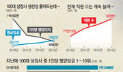 “현대자동차 수준으로 임금을 맞춰 달라.” 올 2분기(4∼6월) 1조 원이 넘는 영업손실을 본 현대중공업의 노조는 최근 이런 요구안을 내놓고 23일부터 파업을 위한 찬반투표를 하고 있다. 평균 근속기간 18년 차를 기준으로 연봉이 7200만 원가량인 현대중공업이 9400만 원이 넘는 현대차 수준으로 임금을 올려달라는 것이다. 현대차 노조 역시 임금 인상안을 놓고 사측과 줄다리기를 하고 있다. 당초 추석 전에 협상이 마무리될 것이란 기대와 달리 일부 강경파가 사측 안에 반대하면서 난항을 겪고 있다. 최근 기업의 경영환경이 악화되는 상황에서도 일부 대기업 노조를 중심으로 임금 인상에 대한 요구가 이어지고 있다. 동아일보가 기업분석 업체인 한국CXO연구소와 최근 4년간 국내 100대 상장사의 경영실적을 분석한 결과 1인당 영업이익이 32% 줄어드는 가운데 1인당 평균임금은 11% 늘어난 것으로 나타났다. 특히 최경환 경제부총리까지 “내수 진작을 위해 임금 인상이 필요하다”며 노조에 힘을 실어주자 기업들은 이른바 ‘임금 패러독스’에 빠지게 됐다. 기업들이 돈을 버는 능력은 계속 떨어지는데 임금은 계속 올릴 수밖에 없는 상황에 처했다는 의미다. ○ 생산성은 하락, 임금은 상승 국내 100대 상장사의 지난해 1인당 영업이익은 2010년에 비해 32% 하락한 6900만 원에 머물렀다. 1인당 당기순이익 역시 2010년 7980만 원에서 지난해 4700만 원으로 급감했다. 반면에 조사 대상 기업의 직원 1인당 평균임금은 2010년 6337만 원에서 지난해 7082만 원으로 11%가량 늘었다. 매출 대비 임금이 차지하는 인건비 비중도 2010년 4.7%에서 지난해 5.5%로 커졌다. 이철행 전국경제인연합회 고용노사팀장은 “퇴직자보다 신규 채용이 많은 100대 기업들은 매년 덩치를 키우고 있기 때문에 인원을 꾸준히 늘려나가는 것”이라고 설명했다. 물가 상승에 따라 최소한의 임금 인상은 불가피하다는 반론도 적지 않다. 대기업 11년 차 직장인인 박모 씨는 “물가 상승률만큼의 임금 인상 요구는 당연한 것”이라며 “대기업 평균으로는 임금이 꾸준히 오를지 모르지만 실적이 나쁜 상당수 기업은 수년째 임금이 동결돼 생활이 힘들다”고 반박했다. 그러나 생산성이 뒷받침되지 않은 임금 인상은 결국 봉급생활자에게도 부메랑으로 돌아올 가능성이 크다. 조사대상 기업 중 지난해 매출 대비 인건비 비중이 가장 높은 곳은 삼성SDI로 15.6%에 이른다. 이 회사는 지난해 직원 1인당 영업손실이 평균 1500만 원, 순손실이 700만 원이었다. 하지만 직원 수는 지난해 8500명으로 1년 사이에 1000명이 늘고 1인당 평균임금도 1.1%(87만 원) 상승했다. 오일선 한국CXO연구소 소장은 “삼성SDI의 경우 직원 수와 임금은 늘었는데 생산성은 하락한 것으로 최근 이 회사가 인력 감축안을 꺼낸 것은 이와 무관하지 않다”고 설명했다. 대기업을 위주로 임금 인상이 이뤄지면서 중소기업(상시 종업원 300명 미만)과의 임금 격차가 커지는 것도 문제다. 통계청 자료를 보면 2001년에는 제조업 분야의 중소기업 직원들이 대기업 임금의 65.9% 수준을 받았지만 이 비율은 지난해 50%대 초반까지 떨어졌다. ○ 대기업만의 임금 인상은 내수진작에 역부족 대기업 위주의 임금 인상이 정부가 바라는 내수 진작 효과로 이어질지에 대해서도 회의적인 전망이 나온다. 한국은 고용과 임금이 보장된 대기업 정규직과 고용의 88% 정도를 차지하고 있는 중소기업 근로자들이 철저히 분리된 이른바 ‘이중 노동시장’ 구조를 갖고 있기 때문이다. 대기업의 임금 인상이 중소기업에 대한 단가 하락 압력으로 작용할 것이란 우려도 있다. 백필규 중소기업연구원 선임연구위원은 “대기업과 중소기업 간에 긴밀한 생산고리가 이어진 상황에서 대기업이 무리하게 임금을 올리면 결국 중소기업에 대한 단가 하락으로 이어져 전체적인 내수 소비가 오히려 줄어들 수 있다”고 지적했다.정세진 mint4a@donga.com·강유현 기자}