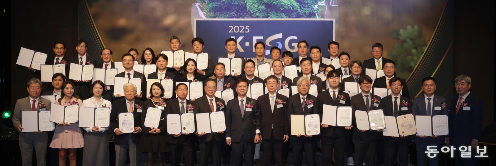 21일 서울 중구 더플라자호텔에서 열린 제4회 ‘K-ESG 경영대상’ 수상자들이 기념촬영을 하고 있다. 평택시가 국토교통부 장관상, 한국에너지공단이 기후에너지환경부 장관상, 한화자산운용·한국산업기술기획평가원이 고용노동부 장관상을 받는 등 총 41개 기업·기관·단체가 부문별 대상을 수상했다. 동아일보가 주최한 이 행사는 산업통상부 등 주요 부처가 후원했다.변영욱 기자 cut@donga.com}