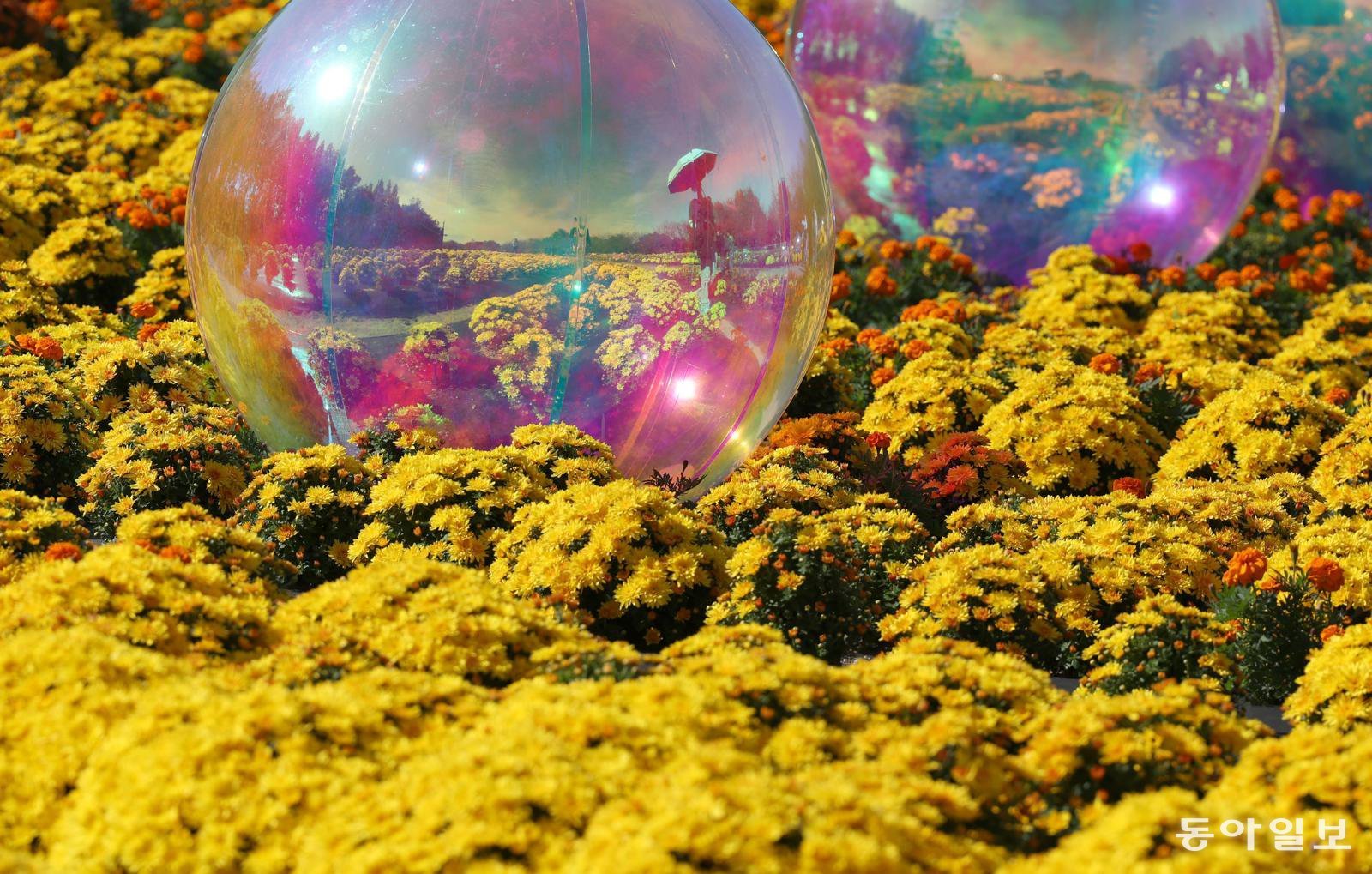 30일 인천 서구 드림파크 야생화 단지에 마련된 조형물이 국화에 둘러싸여 있다. 23일부터 이곳에서 열린 ‘2025 드림파크 국화축제’에서는 국화 토피어리와 미니정원, 포토존 등 다양한 전시가 마련돼 가을 정취를 만끽할 수 있다. 국화축제는 11월 5일까지 열린다.변영욱 기자 cut@donga.com}