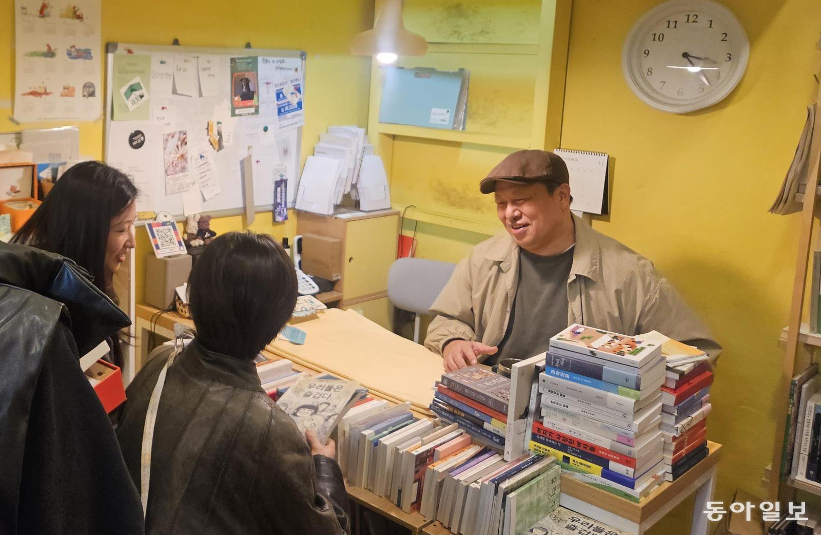 “여기 오면 사장님, 손님 그런 거 없습니다. 그냥 다 친구들이죠.” 11일 오후 4시, 서울 중구 방산종합시장 2층의 ‘그래서책방’에서 사장 오주현 씨(52)는 웃으며 이렇게 말했다. 노란 벽지 아래 따뜻한 조명이 비추는 3평 남짓한 공간에서는 오 씨와 손님 여섯 명이 작은 테이블에 둘러앉아 담소를 나누고 있었다. “밥은 먹었냐”, “그 일은 잘 풀렸냐” 같은 안부가 오갔고, 책 이야기가 자연스레 이어졌다. 손님 정호연 씨(26)는 “책도 책이지만 사람들이 좋아서 이곳을 찾는다”며 “늘 따뜻하게 맞아주는 분위기가 느껴져서 마음이 편안해진다”고 말했다.● 지역 서점과 시민을 잇는 ‘서울형책방’ 그래서책방은 올해 서울시가 선정한 ‘서울형책방’ 60곳 중 하나다. 서울도서관은 올해 시내 서점의 문화프로그램 운영과 홍보를 지원하는 ‘서울형책방’을 선정해 운영하고 있다. 지역 서점을 단순한 책 판매 공간이 아닌 복합문화공간으로 키우기 위한 사업으로, 2019년 시작돼 올해로 7년째다. 서울형책방은 단순한 프로그램 운영 지원을 넘어 ‘책방 생태계 회복’과 ‘책 문화 확산’이라는 장기 목표를 두고 있다. 사회적 이슈를 다루는 북토크, 지역 탐방 등 생활 밀착형 프로그램은 물론이고 그림책 만들기, 엽서북 제작 같은 창작 워크숍과 SF 북클럽, 고전 읽기 모임 등 다양한 테마의 독서 프로그램이 열린다. 그래서책방에서도 시민 참여 프로그램이 꾸준히 운영된다. 단골 김지유 씨(43)는 “얼마 전 책방에서 손제본 수업에 참여해 직접 노트를 만들었다”며 “실을 꿰고 한 장 한 장 엮다 보면 복잡한 생각이 정리되고 마음이 차분해진다”고 말했다. 오 씨는 “책을 매개로 사람들이 만나고, 그 안에서 자연스럽게 위로와 연결이 생긴다”고 덧붙였다.● 야외도서관·독서챌린지 등 독서 문화 확산 올해 서울형책방으로 선정된 60곳은 강남구에서 중랑구까지 25개 자치구에 고르게 분포돼 있다. 서점당 최대 400만 원의 프로그램 운영비가 지원되며, 서울시는 BI 스티커와 책모형 현판, 공식 굿즈 제작, 온·오프라인 홍보 콘텐츠 제작 등도 함께 돕고 있다. 특히 9월부터 이달 1일까지는 서울야외도서관에서 동네서점 10곳이 참여한 ‘움직이는 서울형책방’ 행사가 열렸다. 시민들은 북토크, 전시 등을 통해 지역 서점의 책문화를 체험했다. 서울시는 시민이 언제 어디서나 책을 즐길 수 있도록 다양한 독서 프로그램도 추진하고 있다. 전국 야외도서관 위치와 운영 정보를 한눈에 볼 수 있는 통합 독서지도 플랫폼 ‘힙독핫플 맵(여기는 힙독핫플)’ 서비스를 5월부터 운영 중이다. 이동형 독서 프로그램 ‘노마드 리딩’과 ‘서울형책방’ 정보도 함께 제공한다. 교보문고와 협업해 서로 인상 깊은 문장을 공유하는 ‘마음여행 독서챌린지’도 진행 중이다. 이 같은 프로그램을 통해 시민들이 책을 매개로 자연스럽게 관계를 형성하고, 지역 공동체 안에서 독서 문화가 일상으로 정착하도록 돕겠다는 목표다. 오지은 서울도서관장은 “서울형책방은 시민이 책과 문화를 자연스럽게 누릴 수 있는 지역 공동체의 문화적 구심점”이라며 “우리 동네 어디서든 책방이 곧 문화가 되는 경험이 이어지길 바란다”고 말했다.임재혁 기자 heok@donga.com고진영 인턴기자(연세대 언론홍보영상학부 졸업)}