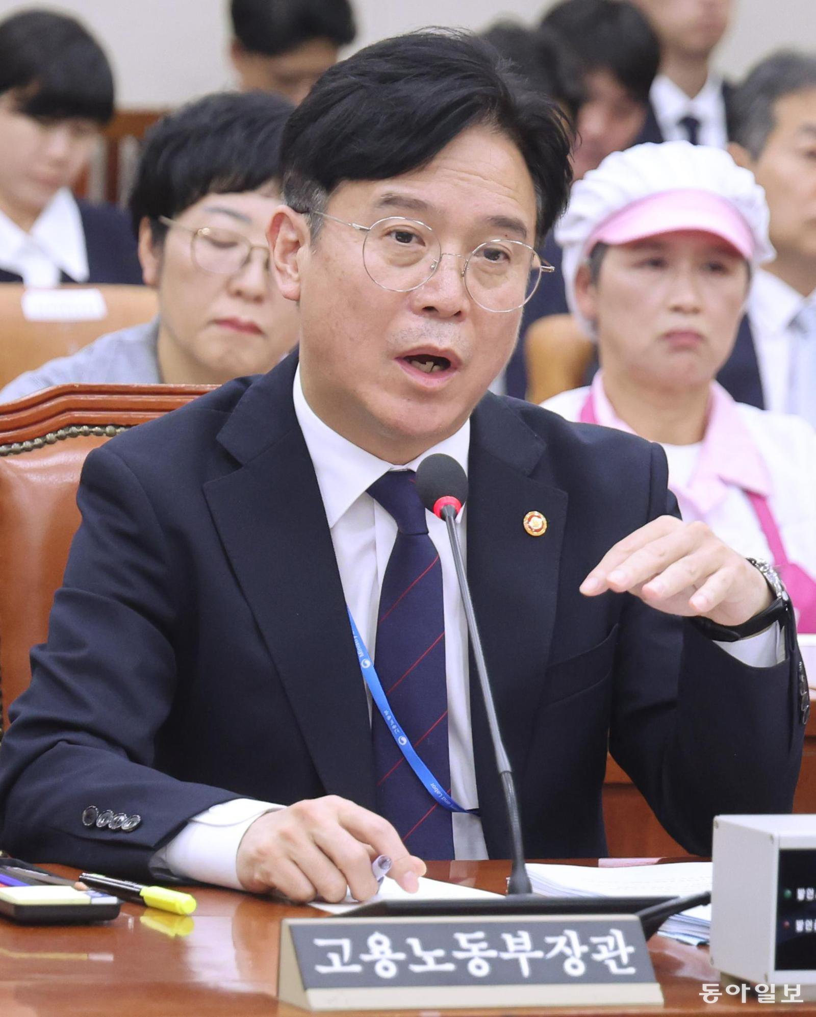 김영훈 고용노동부 장관이 15일 주 4.5일제 시행에 대해 “일방적으로 법 제정을 통해 진행하기보다 자율적으로 (사업장을) 지원하는 방식으로 한다”고 밝혔다. 주 5일제 시행 때처럼 1주 근로시간을 법으로 낮춰 강제하지 않고 근로시간을 줄인 사업장에 인센티브를 주는 방식으로 추진한다는 것이다. 다만 이날 국회 앞에서는 소상공인연합회 등이 “주휴수당 폐지 없는 주 4.5일제는 사형선고”라며 주 4.5일제 반대 기자회견을 열었다. 여야는 이날 국회 기후에너지환경노동위원회 노동부 국감이 시작되자마자 전 전국민주노동조합총연맹(민노총) 간부의 간첩 혐의 대법원 확정 판결을 놓고 충돌했다. 국민의힘이 관련 인사의 국감 출석이 필요하다고 주장하자 범여권은 “색깔론에 유감” “민노총에 대한 심각한 명예훼손”이라며 사과를 요구해 고성이 오갔고, 결국 예정보다 1시간가량 늦게 일정을 시작했다.● 노동장관 “연차 휴가 활성화로 노동시간 줄일 것” 김 장관은 이날 노동부 국감에서 주 4.5일제 도입 진행 상황을 묻는 박해철 민주당 의원의 질문에 법정근로시간을 줄이기보다 “주 52시간 상한제도 못 지키는 사업장에 대해 근로감독을 실시하고, (사업장마다) 연차 휴가를 활성화하는 방식으로 노동시간을 줄일 생각”이라고 답했다. 이재명 정부는 지난해 기준 1859시간인 연간 근로시간을 1700시간대로 줄인다는 방침을 세우고 올해 안에 주 4.5일제 지원 법안을 마련하겠다고 밝힌 바 있다. 김 장관은 내년 3월 10일 시행 예정인 ‘노란봉투법’(노동조합 및 노동관계조정법 2·3조 개정안)에 대해선 보완 입법을 검토하겠다고 밝혔다. 국민의힘 윤상현 의원이 “(노란봉투법의) 사용자 정의가 애매모호하다. 극심한 혼란을 방지하기 위해 원하청 교섭창구 단일화 등 보완입법이 필요하다”고 언급하자 김 장관은 “보완입법을 검토하겠다”고 답했다. 정부는 노란봉투법을 구체화하기 위한 매뉴얼을 준비 중이지만 법적 구속력이 없어 보완입법이 필요하다는 목소리가 나왔다. 김 장관은 이어 ‘사업 경영상의 결정’으로 넓어진 노동쟁의 대상을 구체화하는 방안에 대해 “필요하다면 질병판정위원회처럼 어디까지가 대상이 되는지를 확인할 수 있는 기구도 고민하고 있다”고 말했다. 산업재해 방지 대책에 대해 김 장관은 “노동자들의 안전조치가 미비한 경우 사법 처리도 검토하겠다”며 “실제로 안전모를 착용하지 않고 현장에 들어가거나 적발되면 그대로 사법처리하겠다”고도 했다. 이날 국감에 출석한 정종철 쿠팡풀필먼트서비스(CFS) 대표는 일용직 근로자가 주당 15시간 미만 근무하면 근속기간을 초기화한 퇴직금 기준을 원래대로 바꾸겠다고 밝혔다. 노동부는 이를 부당한 퇴직금 체불로 보고 기소의견으로 검찰에 송치했지만 올해 4월 검찰이 불기소처분했다. 수사를 담당했던 문지석 부장검사는 이날 국감장에 나와 “(윗선에서) 무혐의 가이드라인이 전달됐다. 검찰이 기소해야 한다고 생각한다”고 증언했다.● 민노총 관계자 국감 출석 놓고 여야 충돌 국민의힘 의원들은 민노총 전직 간부 2명이 지난달 간첩 혐의로 대법원에서 징역 9년 6개월의 확정 판결을 받은 점을 들어 관계자들을 국감 증인으로 채택해야 한다고 주장했다. 우재준 국민의힘 의원은 “민노총 (전직) 주요 간부들이 간첩 활동을 하다가 확정 판결이 났다. 여기 관련된 분들, 민노총은 어떻게 생각하는지 확인해야 한다”고 했다. 같은 당 김위상 의원은 “민노총 위원장이 증인으로 나와 조직 내에서 반국가적인 어떤 활동을 했는지를 밝혀야 한다”며 목소리를 높였다. 범여권 의원들은 ‘색깔론’이라며 반발했다. 정혜경 진보당 의원은 “색깔론을 입히고 특정 조직의 명예를 훼손시키는 이 행위는 상당히 심각한 문제”라며 김 의원을 향해 “사과하라”고 목소리를 높였다.최혜령 기자 herstory@donga.com이문수 기자 doorwater@donga.com이지운 기자 easy@donga.com}