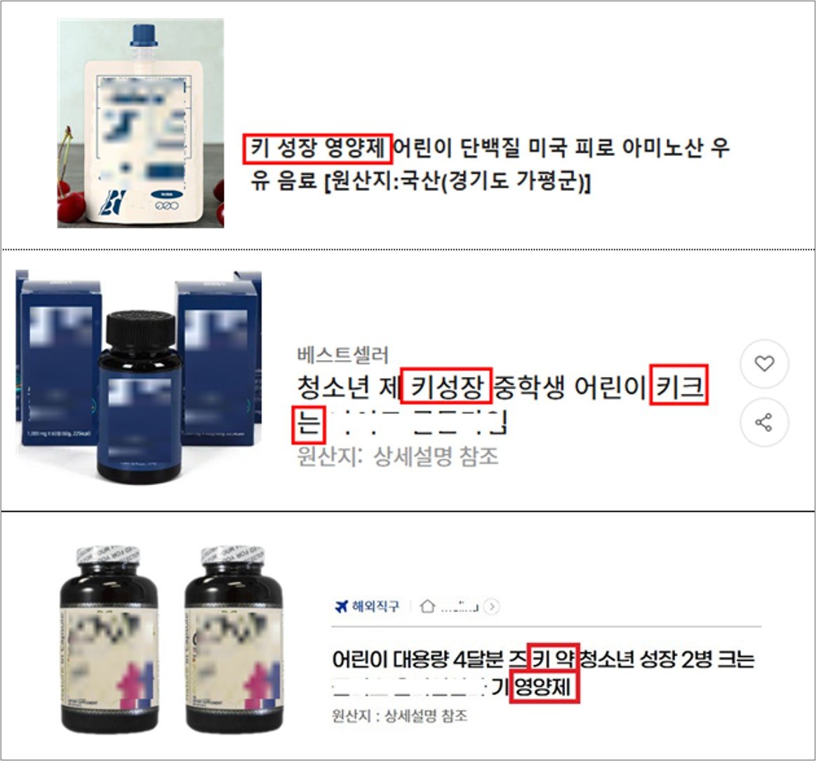 ‘어린이 키 성장’ ‘키 크는 주사’ 등 일반 식품을 건강기능식품으로 오인하게 하는 표현 등을 사용한 온라인 부당광고 및 불법판매 게시글 219건이 적발됐다. 22일 식품의약품안전처는 지난달 15~19일 키 성장과 관련된 식품이나 건강기능식품, 성장호르몬제 등 의약품을 광고·판매하는 온라인 게시글 점검 결과를 공개했다.식약처가 적발한 부당광고는 153건으로 온라인 판매사이트에서 86건, 소셜네트워크서비스(SNS)에서 67건 적발됐다. ‘키 성장 영양제’ ‘청소년 키 성장’ ‘중학생 어린이 키 크는 식품’ 등 일반 식품을 건강기능식품으로 오인하게 하거나 혼동시킨 광고가 122건(79.7%)로 가장 많았다. ‘키 성장’ 등 인정받지 않은 기능성을 내세운 거짓·과장 광고 16건(10.5%), ‘키 약’ 등 식품을 의약품으로 오인하게 하는 광고 8건(5.2%), ‘성조숙증’ 등 질병의 예방이나 치료를 표방한 광고 6건(3.9%) 순이었다.성장호르몬제 등 의약품을 온라인에서 불법 판매하거나 알선·광고한 온라인 게시물은 66건이었다. 적발된 사례 중에는 중고거래 마켓에서 병·의원에서 처방을 받아야만 사용할 수 있는 성장호르몬 주사를 판매한 경우도 있었다. 식약처는 소비자들에게 “온라인으로 건강기능식품 구매 시 제품에 표시된 건강기능식품 인증 마크와 기능성 내용을 확인하고 구매해야 한다”며 주의를 당부했다.조유라 기자 jyr0101@donga.com}