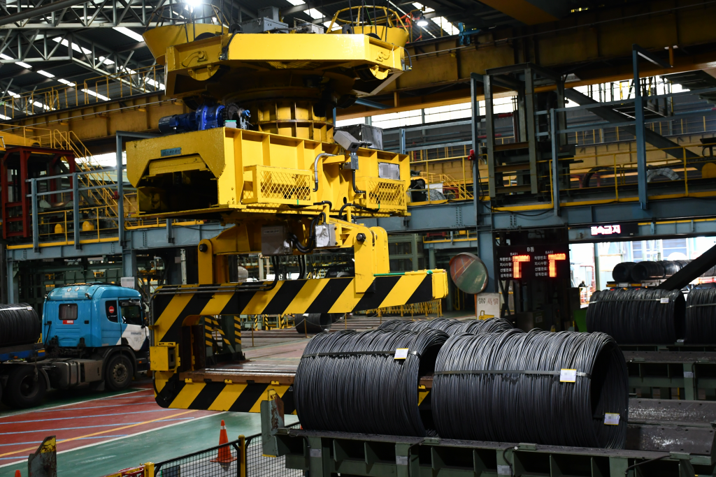 전례 없는 철강업계의 불황 속에서 포스코그룹은 연구개발(R&D) 역량 기반의 기술 혁신으로 생산 자동화 수준을 높여 위기를 돌파하고 있다. 포스코는 이른바 ‘인텔리전트 팩토리’를 더 확대하겠다는 포부다. 포스코그룹은 인공지능(AI)·정보기술(IT)·자동화 기술을 융합해 비정형 제품(크기가 정해지지 않은 제품)을 크레인으로 나르는 시스템을 개발했다. 이어 이를 제철소 현장에 적용하고 나섰다. 포스코DX에 따르면 이 크레인 자동화 기술로 한 번에 최대 8t에 달하는 선재 코일 제품을 운송할 수 있다. 선재 코일은 철강재를 가늘게 뽑아 나선 형태로 감은 비정형 제품이다. 크기, 포장 형태가 제각각이라 형상 인식이 까다롭고 크레인 이송 시 흔들림이 심해 자동화 운송이 어려운 영역으로 꼽혀왔다. 포스코DX는 포스코와 손잡고 영상 인식 AI와 위치 제어, 라이다 기반 센싱 기술을 결합해 이 문제를 풀었다. 시스템 지시에 따라 크레인이 라이다로 코일 위치를 탐지한 뒤 AI 영상 인식이 코일 중심과 내·외경, 폭을 분석해 후크 자동 투입 지점을 계산했다. 이 크레인 자동화 기술엔 로프 길이에 맞춰 흔들림 정도를 예측해 자동 제어하는 ‘안티스웨이’ 기술도 적용됐다. 현장 검증 결과 자동화 기술은 ±20㎜ 이내 정밀도와 99.5% 탐지율을 기록해 성능을 입증했다고 포스코DX는 설명했다. 포스코DX는 후판 등 다른 비정형 제품으로 자동화 기술의 적용 범위를 넓히려고 현장 검증을 추진 중이다. 선재 창고 내에서 인명·차량 사고가 일어나는 것을 예방하기 위해 라이다 센서를 단 안전관리시스템도 마련했다. 이는 라이다 센서를 제품 야드의 주요 통행 구간에 부착해 사람과 차량을 인식하고 충돌 위험이 생기면 크레인 운행을 자동 제어하는 기술이다. 포스코그룹 관계자는 “향후 AI를 활용한 DX 기술 고도화로 제조, 물류 현장의 난제 해결을 적극적으로 추진할 것”이라며 “사물인터넷(IoT), 빅데이터 등도 생산 공정에 접목해 미래 혁신을 이끌어나가는 글로벌 초일류 기업으로 도약하겠다”고 말했다.최원영 기자 o0@donga.com}
