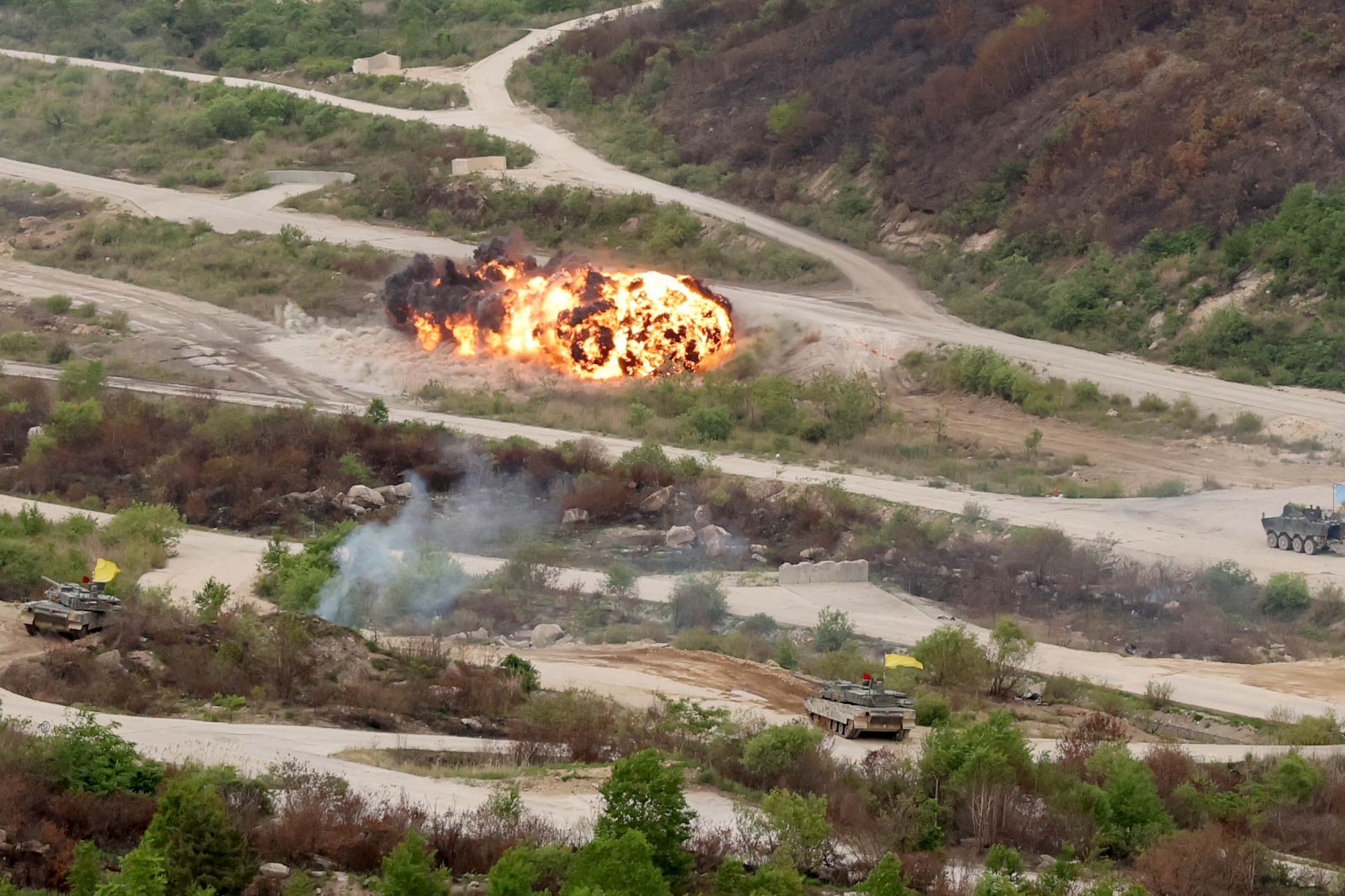 경기 파주시 서부전선 비무장지대(DMZ)에서 군이 수색로 개척 업무를 하던 중에 원인 모를 폭발이 일어나 군인 1명이 다쳤다.20일 합동참모본부(합참) 등에 따르면 이날 오전 9시 22분경 파주시 군사분계선(MDL) 이남 수색로에서 원인 미상의 폭발이 일어났다.이 사고로 육군 모 부대 소속 A 하사가 응급 헬기를 통해 병원으로 긴급 후송됐다.A 하사는 생명에 지장은 없으나 발목이 골절된 것으로 알졌다.폭발은 수색로 개척 임무 중에 일어났다. A 하사는 지뢰방호장구를 착용하고 지뢰 탐지 작업을 하고 있었던 것으로 전해졌다. 군은 모든 가능성을 열어두고 자세한 폭발 원인과 경위를 조사 하고있다.박태근 기자 ptk@donga.com}