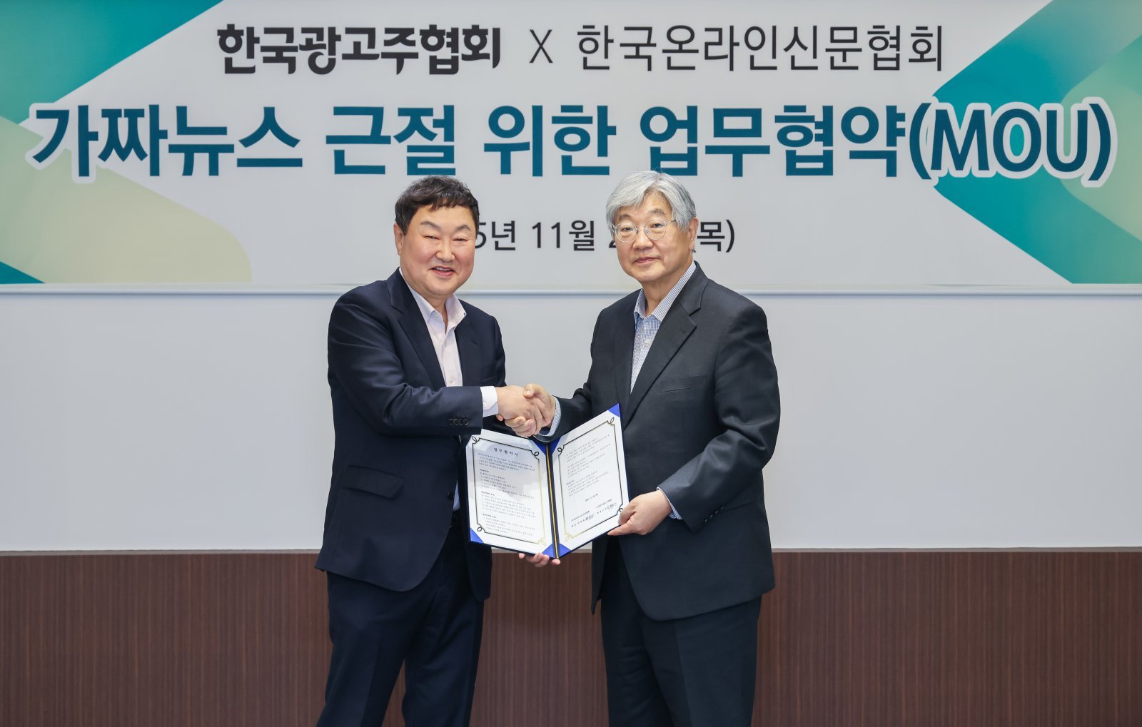 한국온라인신문협회와 한국광고주협회가 ‘가짜뉴스 근절’과 신뢰할 수 있는 콘텐츠 유통 환경 조성을 위해 손잡았다.한국온라인신문협회(회장 박학용)와 한국광고주협회(회장 노승만)는 20일 서울 프레스센터에서 이같은 내용으로 업무협약(MOU)을 체결했다.디지털 미디어 환경이 급변하는 상황에서 검증된 콘텐츠 확산, 광고주의 브랜드 가치 보호, 그건강한 온라인 생태계 조성을 위해 양 기관이 협력하기로 한 것이 협약의 주요 내용이다. 구체적으로 ▷가짜 뉴스 및 허위 정보 대응을 위한 공동 모니터링 체계 구축 ▷검증된 콘텐츠 확산을 위한 자율 규범 및 검증 기준 마련 ▷공동캠페인, 세미나, 교육 프로그램 등 인식 제고 등 다양한 협력 방안을 추진하기로 했다.특히 광고주협회가 주관하는 ‘KAA Awards’내에 ‘디지털콘텐츠상(가칭)’을 신설하고, 온라인신문협회와 공동으로 시상을 운영할 계획이다. 온라인신문협회는 후보작 추천과 심사 기준 수립을, 광고주협회는 광고주의 브랜드 관점에서 콘텐츠의 가치 평가와 심사위원단 구성을 담당한다.노승만 한국광고주협회 회장은 “이번 협약을 계기로 검증된 뉴스 콘텐츠 확산을 통해 가짜뉴스를 근절하고, 이를 기반으로 건강한 광고 생태계 조성에 적극 앞장서겠다”고 밝혔다.박학용 한국온라인신문협회 회장은 “가짜뉴스 근절과 신뢰할 수 있는 뉴스 유통은 언론의 사회적 책임이자 공익적 과제”라며 “광고주협회와의 협력을 통해 건강한 디지털 저널리즘 생태계를 함께 만들어가겠다”고 말했다.양 기관은 향후 정기적인 실무협의체를 구성해 협력 방안을 구체화하고, 공동 세미나와 캠페인을 통해 ‘신뢰 기반의 콘텐츠 유통 문화’확산에 나설 계획이다.박태근 기자 ptk@donga.com}