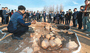 “좌병사 박진(?∼1597)이 경주성 밑에서 비격진천뢰(飛擊震天雷)를 성 안으로 쐈다. 왜적들은 어떻게 만들어졌는지를 알지 못하여 구경하고, 밀고 굴려보기도 했다. 갑자기 포가 폭발하여 소리가 천지를 진동시키고, 쇳조각이 별처럼 부서져서 흩어지니 즉사한 사람이 30여 명이나 됐다. (중략) 왜적들은 드디어 경주성을 버리고 도망쳤다.” 서애 류성룡(1542∼1607)이 임진왜란의 전모를 기록한 ‘징비록(懲毖錄)’에는 전쟁 영화에나 등장할 법한 짜릿한 전투장면이 나온다. 1592년 9월 왜군 가토 기요마사(加藤淸正·1562∼1611) 휘하의 군사들에게 함락당한 경주성을 탈환한 대목이다. 이 전투뿐 아니다. 한산도대첩과 진주성대첩, 행주대첩까지 임진왜란에서 조선이 승리를 거둔 주요한 전투의 배경에는 모두 비격진천뢰가 있었다. 임진왜란에서 조선을 구한 비밀병기 비격진천뢰가 전북 고창군 무장현 관아와 읍성(무장읍성·사적 제346호)에서 무더기로 발견됐다. 호남문화재연구원은 무장읍성 내부 동쪽 성벽 근처에서 비격진천뢰 11점을 비롯해 조선시대 훈련청과 군기고로 추정되는 건물지 등을 발견했다고 15일 밝혔다. 이날 무장읍성에서 공개된 비격진천뢰는 군기고로 사용된 건물의 수혈(竪穴·구덩이) 유적에 6점이 나란히 놓여 있었다. 나머지 5점은 주변 퇴적층에서 발견됐다. 크기는 지름 21cm에 무게는 17∼18kg이다. 겉모습은 볼링공과 비슷하지만 사용되지 않은 폭탄이어서 내부에 화약이 그대로 남아 있었다. 이영덕 호남문화재연구원 조사연구실장은 “지금까지 발견된 비격진천뢰는 총 6점인데 모두 폭발이 일어난 후 탄피만 남아 있는 상태였다”며 “원형 그대로 묻혔다는 점에서 우리나라 병기사(兵器史)에 획기적인 유물이 될 것으로 보인다”고 설명했다. 비격진천뢰가 출토된 구덩이 바로 옆에서는 실제로 포를 쏜 시설로 추정되는 포대(砲臺) 유적이 함께 발견됐다. 돌을 깔아 평탄면을 조성한 뒤 흙을 다졌고, 포를 거치하기 위해 뚫은 기둥구멍 2개도 확인됐다. 조선 후기의 병서 ‘융원필비(戎垣必備)’에는 “중완구(中碗口·화포)에 실어 발사하면 300보(약 360m)를 날아간다”는 내용이 전해진다. 고문헌에 나와 있는 기록 그대로 유물이 발견된 것이다. 임진왜란 발발 1년 전인 1591년 화포장(火砲匠) 이장손이 개발한 비격진천뢰는 조선의 독창적인 발명품이라는 점에서 가치가 높다. 융원필비에 따르면 무쇠 속에 화약과 철 조각을 넣고, 오늘날 폭탄의 신관 역할을 하는 죽통(竹筒)을 넣었다. 폭발 시간을 조절하는 도화선을 감은 목곡(木谷)이 들어있어 시한폭탄과 같은 역할을 했다. 날아서 친다는 ‘비격(飛擊)’이라는 용어처럼 400∼500보(약 500∼600m)까지 날아가는 동안 폭발하지 않도록 한 비결이다. 중국에서도 진천뢰(震天雷)라는 이름의 무기가 개발된 적이 있지만 비격진천뢰처럼 폭발 시간을 지연시킬 수 있는 죽통이 없어 직접 던져 터뜨리는 방법밖에 사용하지 못했다. 다만 이번에 발견된 비격진천뢰는 임진왜란 때 사용된 것이 아니라 조선 후기 고종 시대의 포탄으로 추정된다. 무장읍성은 1894년 당시 전북 고창과 정읍지역을 중심으로 봉기했던 동학 농민군이 무력시위를 벌인 끝에 관군을 내쫓고, 점령한 곳이다. 윤덕향 호남문화재연구원장은 “19세기 양식의 조선기와도 함께 발견됐는데 당시 동학군의 위세에 눌린 관군이 읍성이 함락되기 전 포탄을 묻은 것으로 추정된다”며 “비격진천뢰가 1591년부터 300여 년간 조선 국방의 핵심적인 무기였다는 점을 보여주는 것”이라고 밝혔다. 고창=유원모 기자 onemore@donga.com}