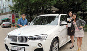 《 올 하반기(7∼12월) 신차 트렌드는 단연 스포츠유틸리티차량(SUV)이다. 그중 눈에 띄는 브랜드가 있다. BMW다. BMW코리아는 8월 ‘X3’ 부분변경(페이스리프트) 모델과 ‘X4’를 선보였고 연말엔 ‘X6’도 내놓는다. 반기 동안 SUV 3개 모델을 동시에 쏟아내는 건 그만큼 폭발하는 SUV 시장을 놓치지 않겠다는 의지의 방증이다. 그래서 가장 볼륨 모델이 될 X3 중에서도 고성능 모델인 ‘X3 x드라이브 30d M 스포츠 패키지’를 동아일보 자동차 담당 기자 3명이 타고 임진각, 경기 파주 헤이리 마을, 킨텍스 등 일대를 돌아다녔다. 메르세데스벤츠 ‘GLK 클래스’와 레인지로버 ‘이보크’ 등과 경쟁하는 모델이다. 》 디자인? 2030에게 딱! 김성규(이하 김)=보닛이 길어 날렵한 느낌이 납니다. SUV인데도 보닛만 보면 스포츠카 느낌이네요. 그리고 준중형급 SUV 치고는 차체가 커 보입니다. (X3의 전장은 4657mm다. GLK가 4535mm인 것에 비하면 긴 편이다. 전폭도 1881mm로 GLK 1840mm보다 넓다.) 최예나(이하 최)=전반적인 실루엣과 곡선이 예쁘게 빠진 것 같아요. 특히 X3는 흰색이 잘 어울리네요. 강유현(이하 강)=‘X1’과 비교하면 선이 더 날렵하면서도 빵빵한 느낌이 나요. (BMW코리아는 기존 X3보다 헤드램프와 리플렉터(위험방지용 반사판)가 길어지고 범퍼에 입체감을 더했다고 설명했다.) 20, 30대 남녀가 두루 좋아할 디자인인 것 같네요. X3 중에서도 M 스포츠패키지엔 스마트키에 파란색 라인이 적용돼 있습니다. 공교롭게도 둘 다 치마를 입은 강, 최 기자는 차에 오르며 “치마를 입은 상태에서 타도 내리기에 불편하지 않다”고 입을 모았다. 낮은 차체의 차량을 불편해하는 최 기자는 운전석에 앉으며 “시야가 확 트여 좋다”고 말했다. 이 차의 전고는 1678mm, 최 기자가 보유한 기아차 ‘쏘울’보다 78mm 높다. 키가 180cm 이상 남성이 타기에도 충분해 보였다.부드럽고 조용한 주행성능 김=디젤차 치고는 꽤 조용하고 진동이 적네요. 순간 가솔린차인 줄 착각했을 정도입니다. 가속 페달을 밟으면 부드럽게 속도가 올라가고요. 강=그래도 배기량 3000cc급에 M 스포츠 패키지인데 가속 페달을 세게 밟았을 때 몸이 뒤로 젖혀지며 튀어 나가는 느낌이 덜한 것은 아쉽습니다. 최=승차감도 좋은 편이네요. 시속 100km가 넘어가니 차가 아래로 깔리며 안정적인 느낌이 나요. 4륜구동이어서 험로를 달릴 때도 안심이 될 것 같습니다. 김=(시속 140km에서 90km로 속도를 급히 낮추며) 제동도 즉각적이고 부드럽네요. 변속할 때 순간적으로 RPM이 떨어지며 차가 주춤한 느낌도 거의 없고요. 다만 코너링을 할 때 차가 밀리는 느낌이 있어 아쉽습니다. 강=헤드업 디스플레이의 내비게이션 내용이 ‘1.3km 전방 교차로에서 우회전하라’고 구체적으로 나와 있어서 편리합니다. A필러가 가파르게 떨어져 왼쪽 시야를 방해하지 않는다는 점도 맘에 듭니다. 다만 스티어링 휠은 좀 두껍고 무겁습니다. 여성이 긴 램프를 돌아나갈 때 한 손으로 스티어링 휠을 잡고 있으면 팔이 아프겠네요. 최=컴포트 모드일 땐 오토 스타트 스톱(정지상태에서 시동이 꺼짐)이 작동되다 스포츠 모드로 바꾸면 작동이 안 됩니다. (이 차량은 주행 모드가 스포츠 플러스까지 있다.) 오토 홀드(정지상태에서 브레이크에서 발을 떼도 차가 멈춰 있음) 기능이 있어 편리하네요. 잠깐, 밥 좀 먹읍시다. 3명이 점심을 먹으러 간 곳은 파주시 탄현면에 있는 이탈리안 레스토랑 ‘파머스 테이블’이었다. 자연과 정원을 떠올리게 하는 인테리어로 ‘신사의 품격’, ‘꽃보다 남자’ 등 다수 드라마에 나왔다고 한다.넓은 실내, 준중형 맞아? 강=트렁크가 상당히 넓은데요? (트렁크 용량은 550L, 뒷좌석을 접으면 1600L로 커진다.) 뒷좌석의 레그룸도 넉넉합니다. (X3의 휠베이스는 2810mm다. GLK 2755mm보다 길다.) 게다가 뒷좌석 가운데 부분이 볼록 솟아있지 않아서 피곤하면 그냥 드러누워 가도 될 것 같아요. 다만 뒷좌석의 등받이가 좀 더 뒤로 젖혀져 있으면 편할 것 같습니다. 최=실내공간이 넓어서 아이를 태우거나 짐을 싣기에도 적당할 것 같습니다. 준중형이지만 조수석도 의자와 높낮이, 앞뒤 위치 조정을 전자동식으로 할 수 있어서 편리하네요. 각 문짝에 달린 수납공간에는 약 1L 생수통을 넣을 수 있는 공간도 있습니다. 김=대시보드와 문짝에 있는 메탈 장식은 고급스러운 인상을 줍니다. X3 x드라이브 30d M 스포츠 패키지는 트윈파워 터보 디젤 엔진을 장착해 최고 출력은 258마력, 최대 토크는 57.1kg·m이다. 정지 상태에서 시속 100km까지 5.9초 만에 도달한다. 연료소비효율은 L당 12.2km다. 기자 3명은 일부 편의기능을 제외하면 대부분이 평균 이상이라는 결론을 내렸다. 다만 8390만 원이나 하는 가격은 부담스러웠다. ‘X3 x드라이브 30d’(7590만 원) 또는 ‘X3 x드라이브 20d x라인’(6690만 원)으로 눈을 돌리면 조금은 싸게(?) X3를 경험할 수 있을 듯하다.정리=강유현 기자 yhkang@donga.com}