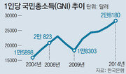 지난해 1인당 국민소득이 2만8000달러를 돌파했다. 하지만 여기엔 한국경제의 성장세 못지않게 지난해 원화강세로 인한 ‘환율 효과’가 큰 몫을 했다. 또 올해는 저성장과 저물가, 환율 상승이 겹치면서 국민소득 3만 달러 달성이 쉽지 않을 것으로 전망된다. 25일 한국은행이 발표한 ‘2014년 국민계정(잠정)’에 따르면 지난해 1인당 국민총소득(GNI)은 2만8180달러로 전년(2만6179달러)보다 2001달러(7.6%) 증가했다. 1인당 GNI는 2006년에 처음 2만 달러를 돌파했다가 글로벌 금융위기를 맞아 2009년 1만8303달러로 후퇴했지만 2010년 2만 달러 고지를 회복한 뒤 매년 증가해 왔다. 지난해 국민소득이 크게 증가한 것에는 무엇보다 환율의 도움이 컸다. 지난해 1인당 GNI는 원화 기준으로는 2968만 원으로 2013년보다 3.5% 늘어나는데 그쳤다. 그러나 지난해 원-달러 환율이 3.8% 떨어지면서(원화가치 상승) 달러 환산액은 크게 늘어났다. 기업, 정부 부문을 제외하고 개인 부문의 소득만 보여주는 1인당 가계총처분가능소득(PGDI)은 1만5786달러로 전년보다 1081달러 증가했다. 원화 기준으로는 1662만6000원 수준이다. 한은 관계자는 “약간의 오차는 있겠지만 외벌이 4인 가구를 기준으로 봤을 때 가장(家長)의 연봉이 1인당 PGDI의 4배인 6600만 원 수준이라면 전체 국민 중 평균 소득 정도라고 보면 된다”고 말했다. 한편 지난해 연간 국내총생산(GDP) 성장률은 3.3%로 집계됐다. 분기별로는 지난해 4분기(10~12월) 성장률이 전(前) 분기 대비 0.3%로 1월에 발표된 속보치(0.4%)보다 더 낮아졌다. 지난해 명목 GDP는 1485조1000억 원으로 전년보다 3.9% 늘었다. 전문가들은 경제 성장세가 이처럼 기대에 못 미치고 미국의 금리인상 가능성으로 원화가치마저 떨어지는 지금 같은 상황이 계속 전개된다면 올해 국민소득 3만 달러 돌파는 사실상 불가능하다고 말한다. 이준협 현대경제연구원 경제동향분석실장은 “경기회복세가 전반적으로 올해 초에 봤던 것보다 더 안 좋은 상황”이라며 “이런 상황이 계속되면 국민소득 3만 달러는 내년에나 기대해볼 수 있다”고 말했다.유재동 기자 jarrett@donga.com}