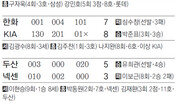 프로야구 한화 로저스(31)가 3경기 만에 시즌 첫 승을 거뒀다. 로저스는 19일 포항 경기에서 삼성을 상대로 선발 등판해 7이닝 동안 5실점했지만 타선이 9점을 뽑아준 덕에 승리투수가 됐다. 한화로서는 최근 6연패, 방문경기 10연패에서 벗어나는 승리였다. 이날 승리로 한화는 38경기 만에 시즌 10승(28패)도 기록할 수 있었다. NC 정수민(26)과 두산 홍영현(25)은 이날 데뷔 첫 승을 기록했다. 정수민은 고척에서 넥센을 상대로 선발 등판해 5와 3분의 1이닝 동안 삼진 4개를 잡아내며 1실점만 기록했고, 홍영현은 0-3으로 뒤진 4회 팀의 두 번째 투수로 등판해 KIA 타선을 2이닝 동안 무실점으로 막았다. 정수민은 메이저리그 진출을 시도하다 돌아와 올 시즌 NC에 입단했고, 홍영현은 2014년 육성선수(옛 연습생) 신분으로 두산에 입단했다. 황규인 기자 kini@donga.com}