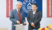 일본의 에도 시대에 조선을 알리는 역할을 톡톡히 해 한류의 원조라고도 불리는 동국통감(東國通鑑) 일본 판목본이 한남대에 기증됐다. 한남대는 일본 도쿄대 고노시 다카미쓰(神野志隆光) 명예교수가 동국통감 56권 완질본을 9일 기증해 왔다고 10일 밝혔다. 동국통감은 1485년(성종 16년)에 서거정 등이 왕명을 받아 고대부터 고려 말까지의 역사를 편찬한 사서다. 임진왜란(1592∼1598년) 때 일본에 전해진 뒤 에도 시대(1603∼1867년)에는 조선을 알기 위한 필독서로 널리 읽혔다. 특히 일본 미토 번(현재의 이바라키 현)에서는 조선 역사에 대한 각별한 관심을 두고 17세기경 동국통감을 판목으로 만들었고 그 판목본(판목으로 인쇄한 책)을 펴냈다. 이 판목은 그 후 조선으로 건너와 조선에서 일본의 판목으로 판목본을 찍어내는 독특한 이력을 만들어 냈다. 현재 규장각에 보존돼 있지만 판목본은 국내에 드물며 일본의 대학도 7곳만 소장하고 있다. 배정열 한남대 문과대학장은 “한류의 원조 격이라 할 동국통감의 일본 판목본이 수백 년 만에 귀향한 셈”이라고 말했다.지명훈 기자 mhjee@donga.com}