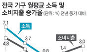 전국 가구 월평균 소득이 관련 통계가 작성되기 시작한 이후 가장 크게 감소한 반면 가계소비는 완연한 회복세를 보여 대조를 이뤘다. 13일 통계청에 따르면 3분기(7∼9월) 전국 가구의 월평균 소득은 345만6000원으로 지난해 3분기(350만6000원)보다 1.4% 감소하며 2분기(―0.1%)에 이어 두 분기 연속 마이너스 증가율을 보였다. ―1.4%는 관련 통계 작성이 시작된 2003년 이후 가장 큰 감소폭이다. 물가상승률을 감안한 실질소득은 305만1000원으로 전년 동기 대비 3.3% 줄어 역시 가장 큰 감소폭을 보였다. 낮은 시중금리의 영향으로 이자소득을 포함한 재산소득이 28.7% 감소했고 근로소득도 0.3% 줄었다. 기획재정부 관계자는 “민간 부문의 고용부진이 계속되는 데다 임금상승률도 아직 낮다”며 “근로소득이 마이너스를 보인 것에는 지난해 9월이었던 추석이 올해 10월로 넘어가며 추석 보너스와 상여금이 제외된 탓도 있다”고 설명했다. 계층별로는 소득 상위 20%의 가구소득이 3.2% 감소한 데 비해 하위 20%는 6.4% 줄어 경기침체의 여파가 저소득층에 더 많은 영향을 미쳤음을 나타냈다. 소득이 크게 줄어든 반면 소비지출은 두 분기 연속 플러스 증가율을 보이며 본격적인 회복세를 보였다. 3분기 전국 가구의 월평균 소비지출은 219만7000원으로 지난해 3분기(213만4000원)보다 3% 증가했다. 물가상승을 감안한 실질 소비지출도 1.5% 늘었다. 항목별로는 신종 인플루엔자 확산에 따라 보건 부문 지출이 전년 동기 대비 12.4% 증가했다. 세제지원 등 정부 정책에 힘입어 자동차 구입은 78.9% 급증했다. 내년부터 대형 TV에 5%의 개별소비세를 부과한다는 정부 방침의 영향으로 TV 등 영상음향기기 지출은 40.3% 늘었다. 반면 담배와 술 소비가 줄며 관련 지출이 10.9% 감소했고 추석이 10월이어서 식료품 및 비주류음료 지출도 4.9% 줄었다. 소득은 줄고 소비는 늘면서 월 가계수지 흑자액은 평균 63만8000원으로 전년 동기 대비 12.4% 감소했다.장원재 기자 peacechaos@donga.com}