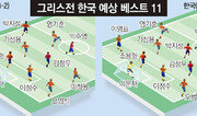 《‘좌우 돌파에 이은 크로스와 세트 피스.’ 12일 오후 8시 반 그리스와의 B조 첫 경기를 앞둔 한국 축구대표팀의 전술 키워드다. 허정무 감독은 남아공 루스텐버그에 베이스캠프를 차린 뒤 7일 자체 연습경기에서 전술훈련을 실시했다. 장신이지만 움직임은 느린 그리스 공략법을 알아본다.》○ 박지성과 이청용의 빠른 발이 핵심공격형 미드필더 기성용(셀틱)과 수비형 미드필더 김정우(광주)는 이날 미드필드 중앙에서 볼을 잡으면 왼쪽 날개의 박지성(맨체스터 유나이티드)이나 오른쪽 날개의 이청용(볼턴)에게 연결했다. 박지성과 이청용은 사이드를 쏜살같이 파고들며 수비를 따돌린 뒤 크로스를 올렸다. 골문 앞에서는 박주영(모나코)과 염기훈(수원)이 슛을 날렸다. 자체 연습게임에서 박지성과 이청용이 수비에 막히면 중앙으로 파고드는 기성용과 김정우에게 볼을 찔러줬고 그 볼은 중앙 골잡이에게 이어졌다.그리스는 방겔리스 모라스(볼로냐)가 196cm, 소티리오스 키르기아코스(리버풀)가 193cm, 루카스 빈트라(파나티나이코스)가 184cm로 장신이다. 키가 큰 만큼 공중전에 강하지만 스피드는 딸린다. 이런 약점을 공략하기 위한 공략법이 좌우 사이드 돌파를 이용한 크로스인 셈이다. ○ 박주영 염기훈 기성용의 프리킥페널티 지역에서 멀리 벗어난 프리킥은 기성용이 전담했다. 기성용은 볼을 길게 또는 낮게 문전으로 띄워줬고 수비라인에서 세트 피스를 위해 공격진에 합류한 이정수(가시마)와 강민수(수원) 등 장신 수비수들이 박주영 염기훈 등과 함께 볼을 향해 달려들었다.페널티 지역 인근에서 얻은 프리킥은 박주영의 오른발이나 염기훈의 왼발로 직접 슈팅했다. 그리스 수비라인을 제대로 공략하지 못할 경우 세트 피스로 골을 넣겠다는 허 감독의 계산에 따른 훈련이었다. 아크 부근에서 날린 박주영의 오른발 프리킥은 옆 그물과 골대를 때리기도 했고, 수비벽을 피해 잘 감아 찬 공은 골키퍼 정성룡(성남)이 몸을 던져 쳐내야 할 정도로 위협적이었다.○ 예상 베스트 11 윤곽전술훈련을 통해 그리스전 예상 선발 라인업도 드러났다. 4-4-2 전형을 쓸 경우 투톱은 박주영 염기훈, 미드필더는 박지성 기성용 김정우 이청용, 수비라인은 이영표(알 힐랄) 이정수 조용형(제주) 오범석(울산)이 기용될 것으로 예상된다. 이날 조용형은 대상포진으로 훈련을 쉬었지만 그는 중앙수비수 붙박이라 선발될 가능성이 높다. 허 감독은 4-2-3-1 전형도 실험했는데 박주영을 원톱에 놓고 염기훈이 왼쪽 날개, 박지성이 중앙 미드필더, 기성용이 수비형 미드필더로 자리를 옮겼다.루스텐버그=양종구 기자 yjongk@donga.com}