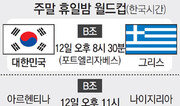 4년을 기다린 지구촌 최고의 축구 축제가 마침내 막이 오른다. 2010년 남아프리카공화국 월드컵이 11일 오후 11시(이하 한국 시간) 케이프타운에서 열리는 남아공과 멕시코의 개막전을 시작으로 다음 달 12일 오전 3시 30분 결승전까지 한 달여간 지구촌을 뜨겁게 달군다. 허정무 감독이 이끄는 23명의 태극전사는 사상 첫 원정 16강 진출의 목표를 향해 힘차게 출사표를 냈다. 한국은 12일 오후 8시 30분 포트엘리자베스 넬슨만델라베이 스타디움에서 그리스와 B조 조별리그 첫 경기를 치른다. 오스트리아 전지훈련에 이어 베이스캠프인 남아공 루스텐버그에서 마지막 담금질을 마친 대표팀은 10일 결전을 치를 ‘약속의 땅’ 포트엘리자베스에 입성했다. 그리스와의 첫 경기는 16강 진출 여부를 사실상 결정지을 단판 승부나 다름없다. 그리스를 꺾을 경우 강호로 꼽히는 17일 아르헨티나, 23일 나이지리아와의 경기에서 발걸음이 한결 가벼워질 수 있다. 남아공 남단의 해안 도시인 포트엘리자베스는 강풍으로 유명해 ‘윈디 시티’라고 불린다. 경기 당일에도 최고 초속 7.8m의 강한 바람이 예고됐다. 하지만 승리를 향한 일념으로 뭉친 태극전사들은 그리스의 장신 숲을 쓰러뜨릴 코리안 열풍을 다짐하고 있다. 집과 거리에서 목이 터져라 “대∼한민국”을 외칠 4700만 국민의 시선이 집중될 양박(박주영 박지성)과 쌍용(이청용 기성용)이 그 선봉에 나선다. 북한은 1966년 이후 44년 만에 다시 월드컵 무대를 밟았다. 북한은 죽음의 조로 평가되는 G조에서 우승 후보 브라질, 포르투갈, 코트디부아르와 맞붙어 험난한 가시밭길이 예상된다.포트엘리자베스=양종구 기자yjongk@donga.com}