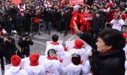 새누리당 박근혜 대선후보가 2일 강원 강릉시 성내동 택시부광장에서 열린 유세에서 시민들을 향해 손을 들어 인사하고 있다. 국회사진기자단}