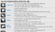 새누리당 박근혜 대선후보는 10일 20대 분야 201개 공약을 담은 정책공약집 ‘세상을 바꾸는 약속, 책임 있는 변화’를 당 홈페이지에 공개했다. 박 후보는 공약집에서 국민통합, 정치쇄신, 일자리와 경제민주화, 중산층 재건을 ‘4대 국정지표’로 제시했다. 특히 빚, 집, 교육, 일자리, 노후 걱정 등을 덜어 중산층 70% 재건을 이룰 정책을 10대 핵심공약으로 내세워 ‘민생 대통령’의 이미지를 부각했다. 김종인 국민행복추진위원장은 기자회견에서 “10월 말 공약을 완결했는데 박 후보가 실현 가능성이 없다며 (공약 채택을) 받아들이지 않아 검토 기간이 오래 걸렸다”고 말했다. 그러나 민주통합당 문재인 후보에 이어 박 후보도 대선을 9일 앞두고 공약집을 늑장 공개하고 상세한 재원 계획 발표는 추후로 미루면서 유권자들이 충분한 정책 검증 시간을 갖지 못한다는 지적이 나온다.○ 7대 주제별 ‘걱정 줄이기’ 공약 제시 공약집에는 박 후보가 지금까지 발표한 10여 개 분야 외에 공개하지 않았던 일자리, 복지, 국방 등의 공약이 대거 소개됐다. 우선 일자리 공약으로는 경제위기 우려와 더불어 커지는 구조조정 불안을 덜기 위해 기업의 정리해고 요건을 대폭 강화하겠다고 내걸었다. 기업이 정리해고 전 업무 재조정, 무급휴직, 근로시간 단축 등 해고 회피 노력을 의무적으로 하도록 근로기준법을 개정한다는 것. 또 쌍용차 정리해고 사태를 언급하며 대규모 정리해고의 경우 해당 지역을 ‘고용재난지역’으로 선포해 해고자의 전직훈련, 생활비, 재취업 지원 등을 지원하겠다고 제시했다. 청년 일자리 대책과 관련해선 △교육, 안전, 복지 공무원의 단계적 증원 △정부-대기업 공동기금 조성을 통한 ‘창업기획사’ 설립 등의 방안을 새로 제시했다. 은퇴를 앞둔 베이비부머의 연착륙을 위한 공약도 포함됐다. 임금피크제와 연계한 60세 정년 연장 법제화를 약속했다. 또 퇴직하면 지역가입자로 옮겨가면서 건강보험료가 높아지는 만큼 유예기간을 현행 1년에서 2년으로 늘려 생계 부담을 줄이겠다고 밝혔다. ‘100세 시대’ 노인의 소득 보장을 위해 도입했지만 용돈으로 전락한 기초노령연금 개정도 약속했다. 기초연금을 도입하고 국민연금과 통합 운영함으로써 65세 이상 노인 중 사각지대를 없애고 현재의 두 배(약 20만 원) 수준으로 연금액을 올리겠다는 것. 다만 총 재원의 30%를 국민연금에서 끌어오겠다는 구상이어서 논란이 예상된다. 현재는 중앙·지방정부가 분담하고 있다. ○ 성장률 고용률 목표치는 반영 안 해 공약집에는 성장률이나 고용률 목표치를 넣지는 않았다. 국민행복추진위 산하 김광두 힘찬경제추진단장이 박 후보에게 제안한 총 10조1000억 원 규모의 경기부양책도 공약집에서는 상당 부분 제외됐다. 이는 ‘747공약’ 같은 구체적인 성장 목표치를 제시했다가 부메랑으로 돌아왔던 이명박 정부의 전철을 밟지 않겠다는 뜻으로 풀이된다. 이명박 정부가 인터넷 표현의 자유를 위축시켰다는 젊은 세대의 비판 여론을 염두에 둔 정책도 내놓았다. 개인권리 침해 정보에 대한 통신심의를 대폭 축소하고 인터넷 포털사의 임시조치제도를 개선해 정보 게재자의 표현의 자유를 보장하겠다고 밝혔다. 부산·경남(PK) 지역의 관심사인 ‘가덕도 신공항’ 사업은 명기되지 않았다. 포괄적으로 ‘동남권 신공항’을 건설하겠다는 선에서 정리됐다. 박 후보의 정책 메시지를 총괄하는 안종범 의원은 “공약 실현을 위해 131조 원이 소요되며 매년 27조 원씩 5년간 135조 원의 재원을 마련할 것”이라고 밝혔다. 한편 이날 강창희 국회의장은 박 후보의 비례대표 의원직 사퇴서를 처리했다. 박 후보의 비대위원장 시절 보좌역을 맡았던 새누리당 비례대표 26번 이운용 씨(51)가 의원직을 승계한다.홍수영 기자 gaea@donga.com}